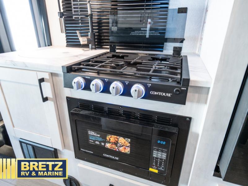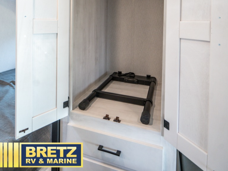 The journey will be oh-so enjoyable when you use this Entrada Class C gas motorhome to explore! You will be able to create meals each day that you are on the road because the kitchen has everything you will need, like a convection microwave, a round sink, a cooktop, a flip-up countertop, and a 10.7-cubic foot refrigerator. There is even a pantry/wardrobe for you to use to store spices, chips, or canned goods. Across from the queen bed slide, you'll find a private bath so you can get cleaned up in the morning, and the vanity with a medicine cabinet is located just outside the bathroom so that someone can brush their teeth while another is showering.