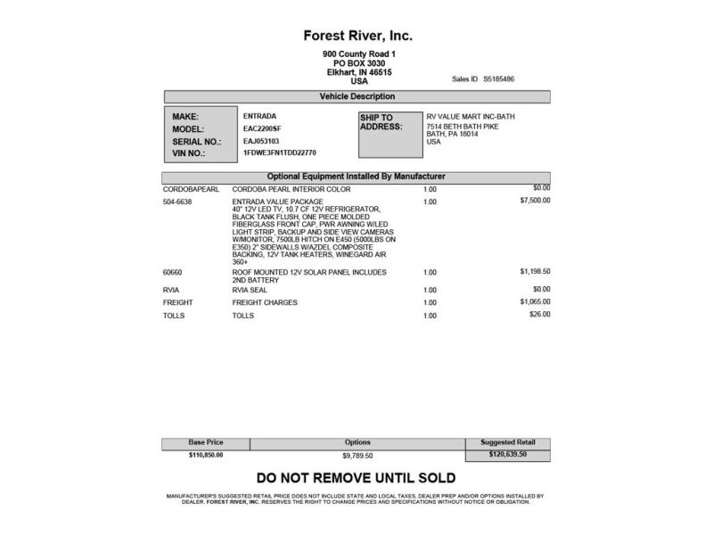 New 2026 EAST TO WEST Entrada 2200S Motor Home Class C