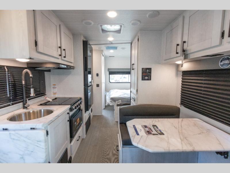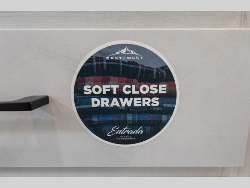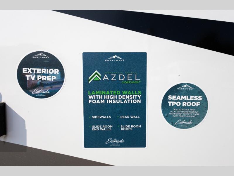 With any Entrada Class C gas motorhome from EAST TO WEST, the construction consists of an automotive painted fiberglass front cap, a Dicor DiFlex ll TPO roof membrane, and Azdel composite sidewalls for added durability. Some of the Entrada value package features include 12V tank heaters to camp during the cooler months, the Winegard Air 360+, plus backup and sideview cameras with a monitor for safety on and off the road. The interior offers a 7-foot interior height for a spacious feel, and 12V USB charge ports will keep your electronics powered up. Choose an Entrada for its tasteful design, attention to detail, bright interior and affordable price-point!