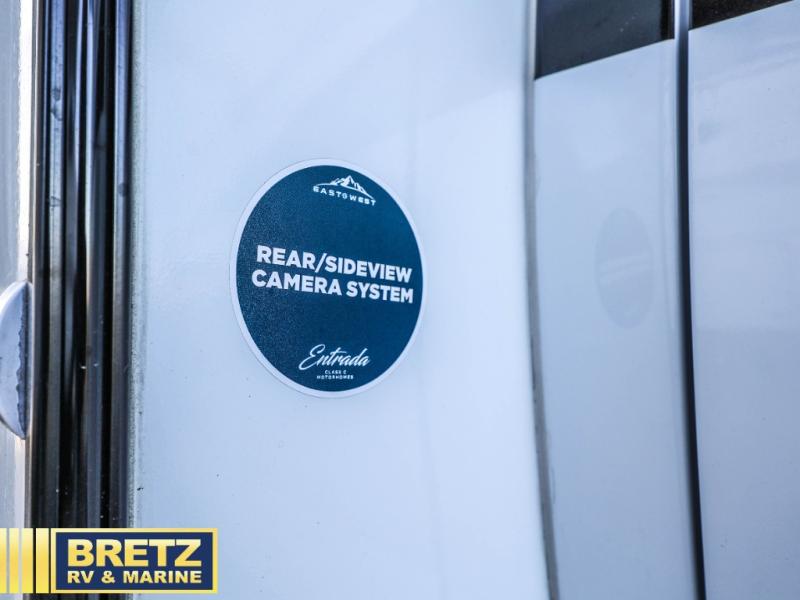 With any Entrada Class C gas motorhome from EAST TO WEST, the construction consists of a completely laminated coach, a one-piece molded fiberglass front cap, 2" thick sidewalls with Azdel composite exterior, a Dicor Diflex ll TPO roof, and integrated entry step. Some of the Entrada value package features include 12V tank heaters to camp during the cooler months, the Winegard Air 360+, plus backup and sideview cameras with monitor for safety on and off the road. The interior offers a 7-foot interior height for a spacious feel, and hardwood shaker style cabinets. Choose an Entrada for its tasteful design, attention to detail, bright interior and/or affordable price-point!