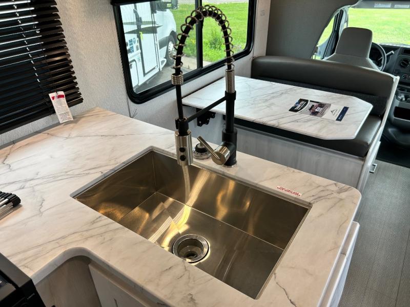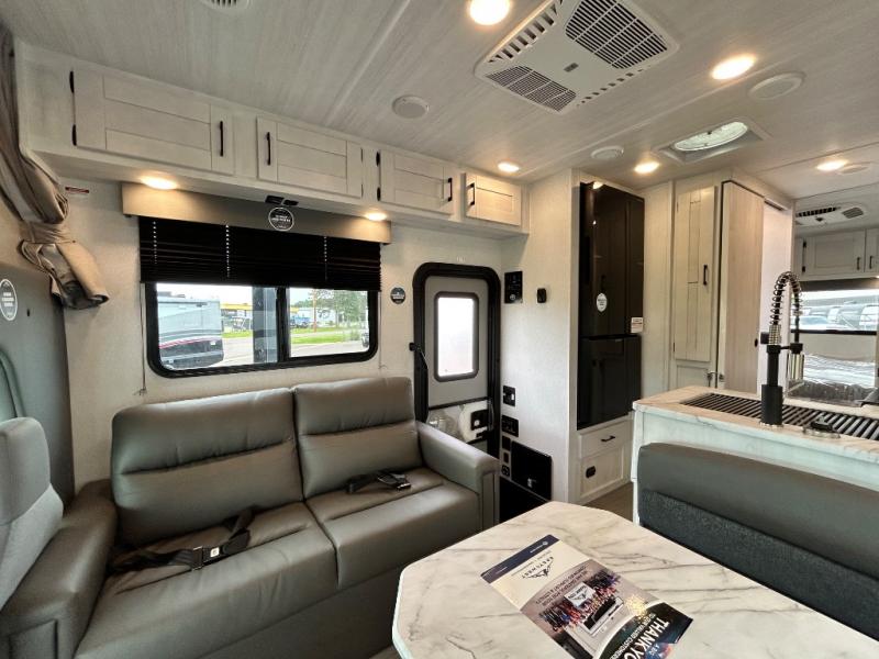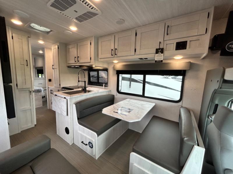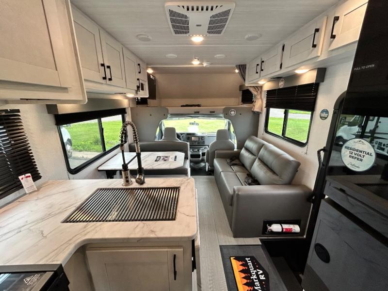 With any Entrada Class C gas motorhome from EAST TO WEST, the construction consists of an automotive painted fiberglass front cap, a Dicor DiFlex ll TPO roof membrane, and Azdel composite sidewalls for added durability. Some of the Entrada value package features include 12V tank heaters to camp during the cooler months, the Winegard Air 360+, plus backup and sideview cameras with a monitor for safety on and off the road. The interior offers a 7-foot interior height for a spacious feel, and 12V USB charge ports will keep your electronics powered up. Choose an Entrada for its tasteful design, attention to detail, bright interior and affordable price-point!