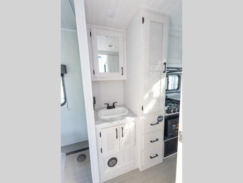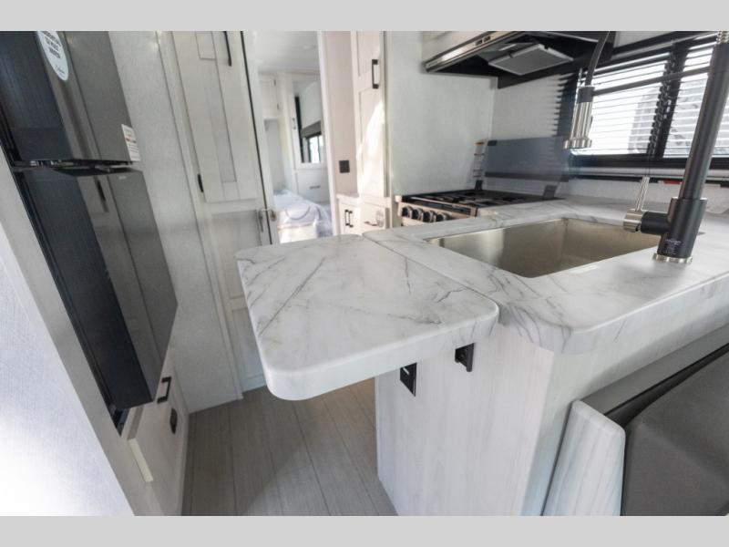 When traveling you want comfort no matter if you are driving, riding, or relaxing once at your campsite. Well, you will have it in this coach! There is a 62" sofa and 42" x 68" booth dinette that can be used for lounging together after an afternoon of walking around the campground, plus the bunk over the cab and the queen-size bed can be utilized if you are too tired to stay up for another minute. Once you are fully rested, head to the kitchen to prepare a delicious breakfast feast with the convection microwave and cooktop. Use the double sink to clean up, and the 10.7-cubic foot refrigerator to keep your perishables fresh. You can even add some extra prep space to this area by pulling out the flip-up countertop. There is also storage all throughout this motorhome with bedside closets, the bathroom shelves, a kitchen pantry, cab storage, and within overhead cabinets.