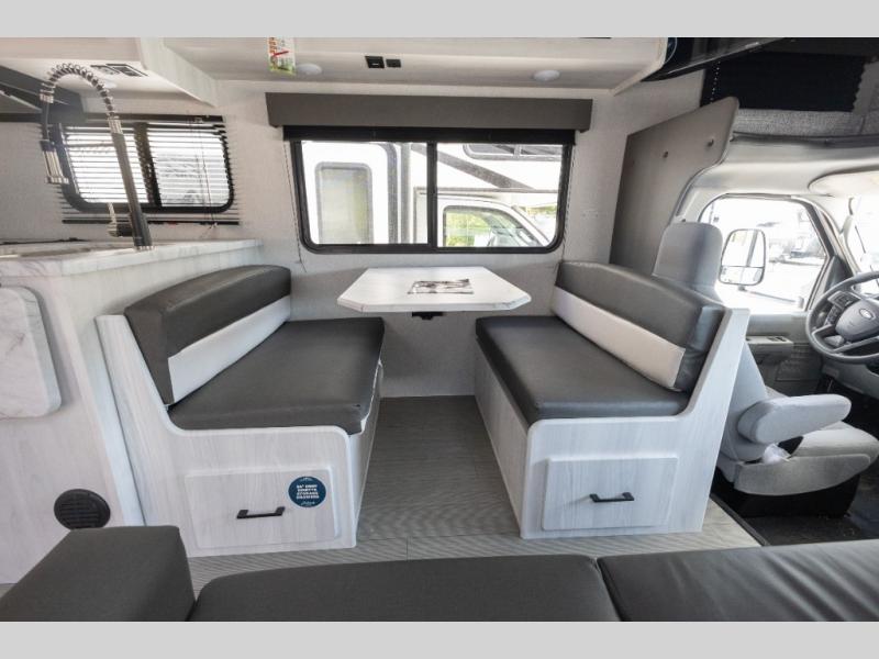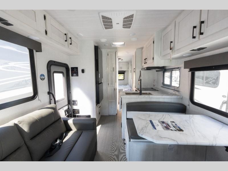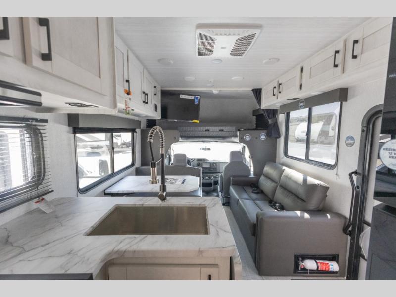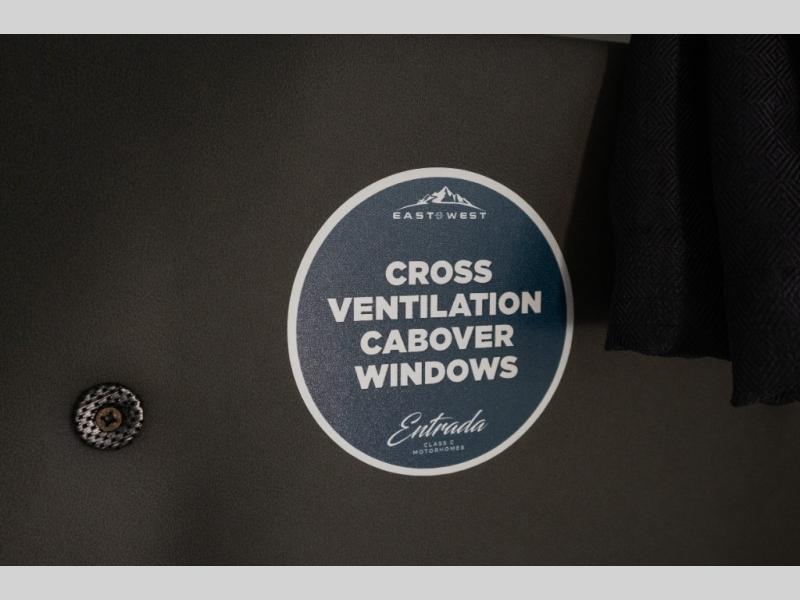 With any Entrada Class C gas motorhome from EAST TO WEST, the construction consists of an automotive painted fiberglass front cap, a Dicor DiFlex ll TPO roof membrane, and Azdel composite sidewalls for added durability. Some of the Entrada value package features include 12V tank heaters to camp during the cooler months, the Winegard Air 360+, plus backup and sideview cameras with a monitor for safety on and off the road. The interior offers a 7-foot interior height for a spacious feel, and 12V USB charge ports will keep your electronics powered up. Choose an Entrada for its tasteful design, attention to detail, bright interior and affordable price-point!