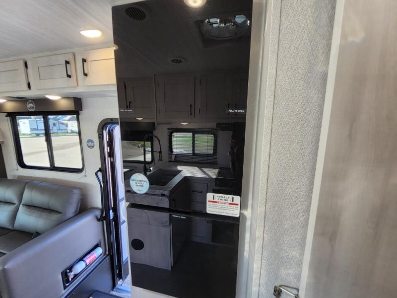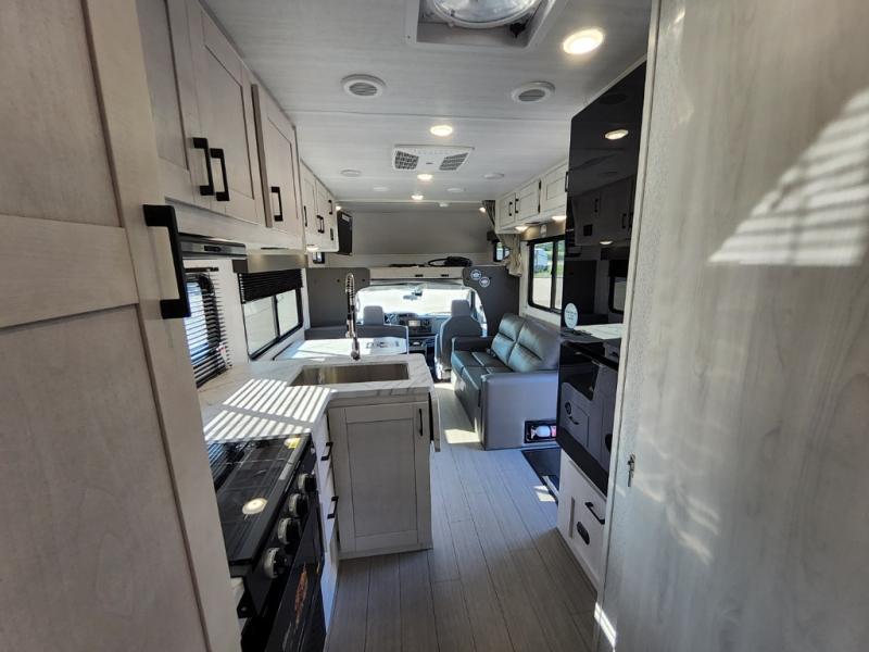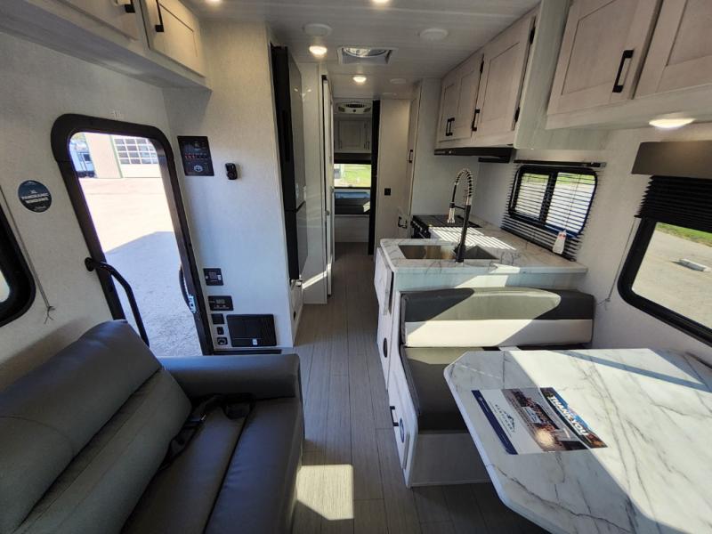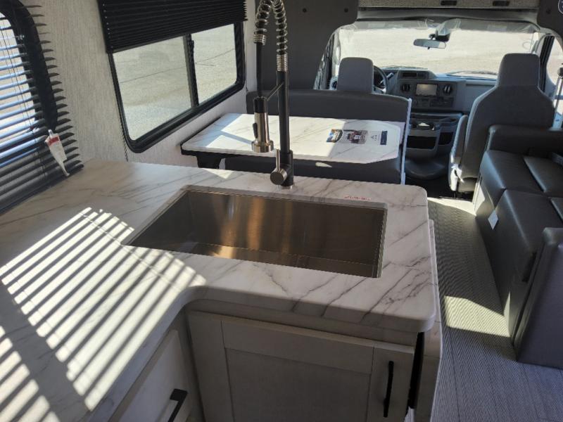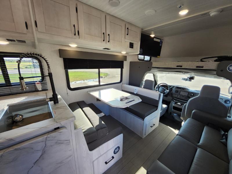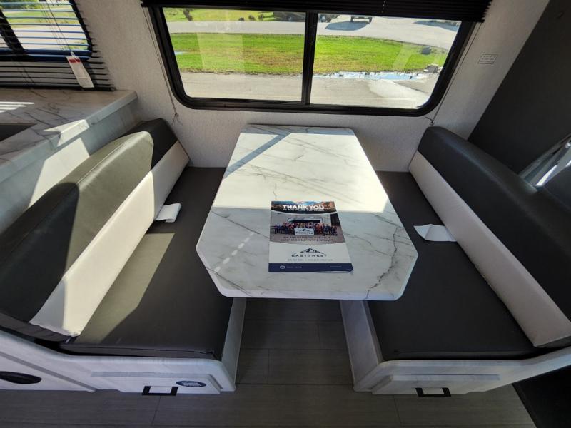 With any Entrada Class C gas motorhome from EAST TO WEST, the construction consists of an automotive painted fiberglass front cap, a Dicor DiFlex ll TPO roof membrane, and Azdel composite sidewalls for added durability. Some of the Entrada value package features include 12V tank heaters to camp during the cooler months, the Winegard Air 360+, plus backup and sideview cameras with a monitor for safety on and off the road. The interior offers a 7-foot interior height for a spacious feel, and 12V USB charge ports will keep your electronics powered up. Choose an Entrada for its tasteful design, attention to detail, bright interior and affordable price-point!