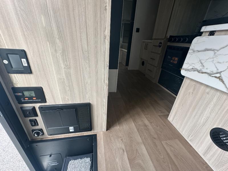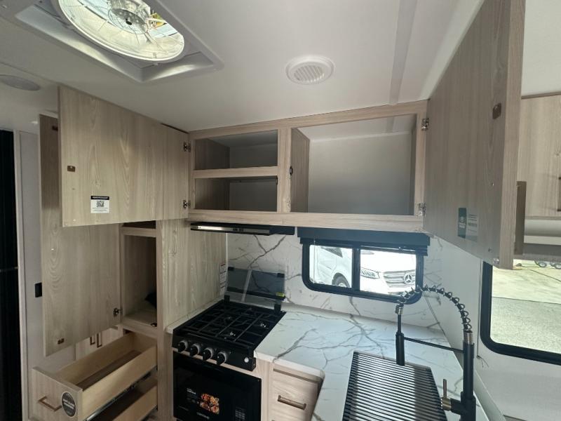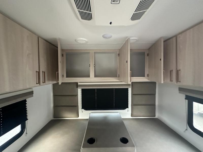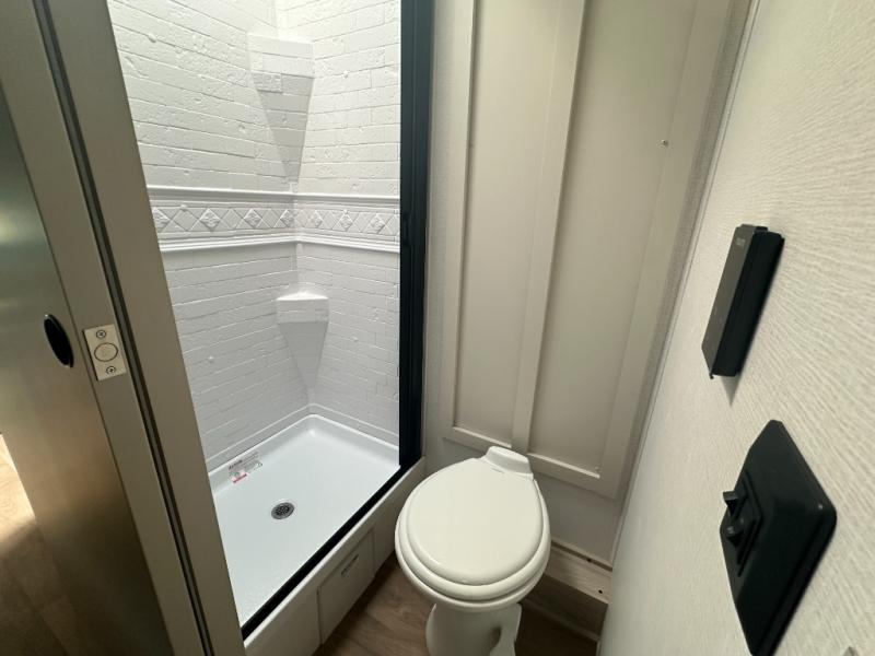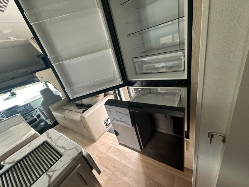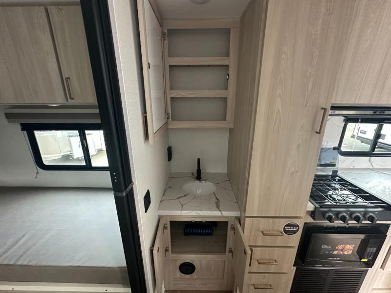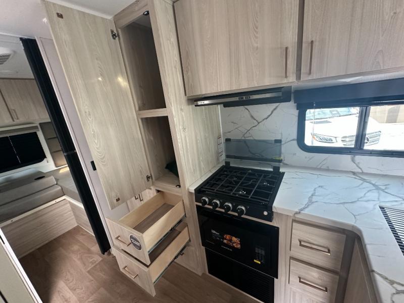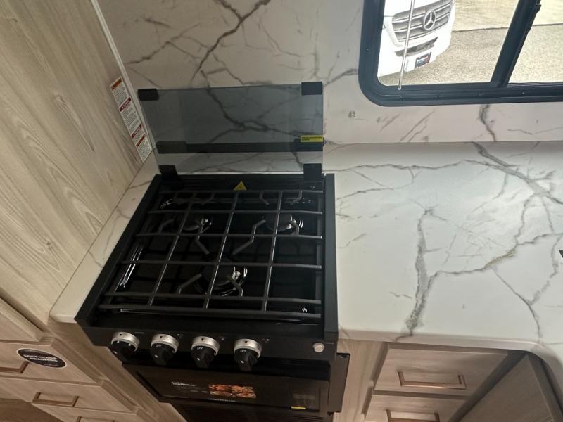 This coach is perfect for traveling with a friend or honey since there are two twin beds that can convert to a king-size bed if you choose! There is a 62" sofa and 42" x 68" booth dinette in the main living area that can double as seating and sleeping space, plus there is a bunk over cab for the little ones. Once you are fully rested, head to the kitchen to prepare a delicious breakfast feast with the convection microwave and cooktop. Use the double sink to clean up, and the 10.7-cubic foot refrigerator to keep your perishables fresh. You can even add some extra prep space to this area by using the countertop extension.