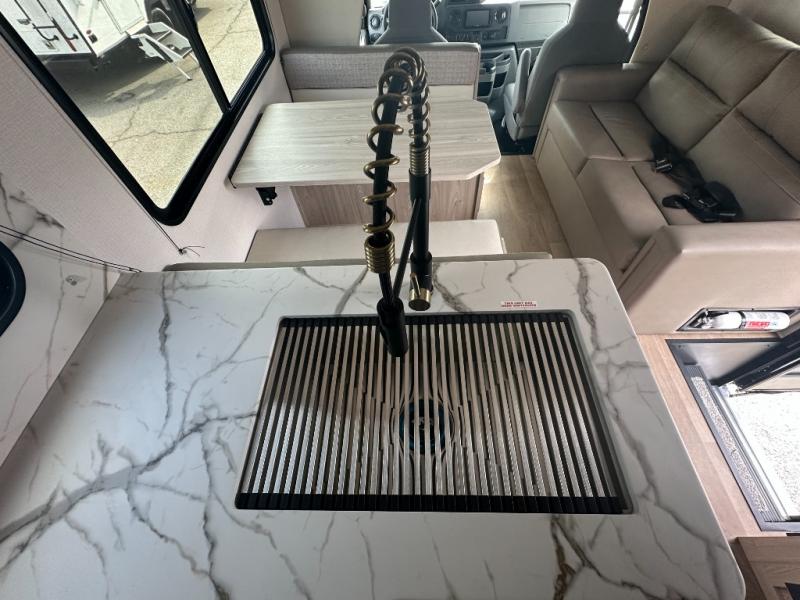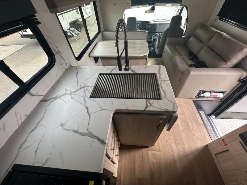 With any Entrada Class C gas motorhome from EAST TO WEST, the construction consists of an automotive painted fiberglass front cap, a Dicor DiFlex ll TPO roof membrane, and Azdel composite sidewalls for added durability. Some of the Entrada value package features include 12V tank heaters to camp during the cooler months, the Winegard Air 360+, plus backup and sideview cameras with a monitor for safety on and off the road. The interior offers a 7-foot interior height for a spacious feel, and 12V USB charge ports will keep your electronics powered up. Choose an Entrada for its tasteful design, attention to detail, bright interior and affordable price-point!
