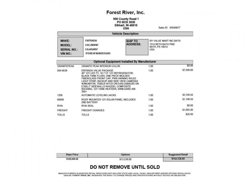 New 2026 EAST TO WEST Entrada 2800S Motor Home Class C