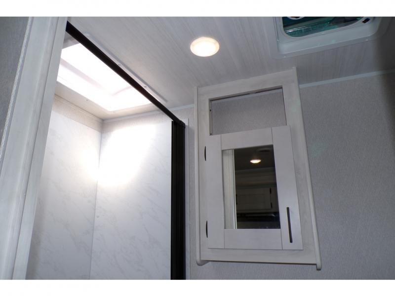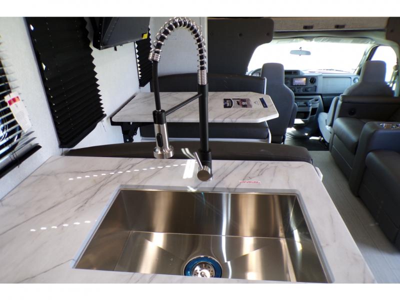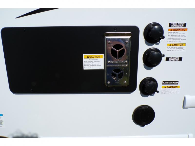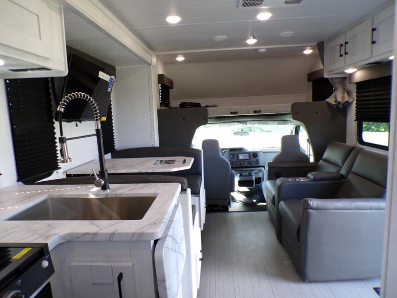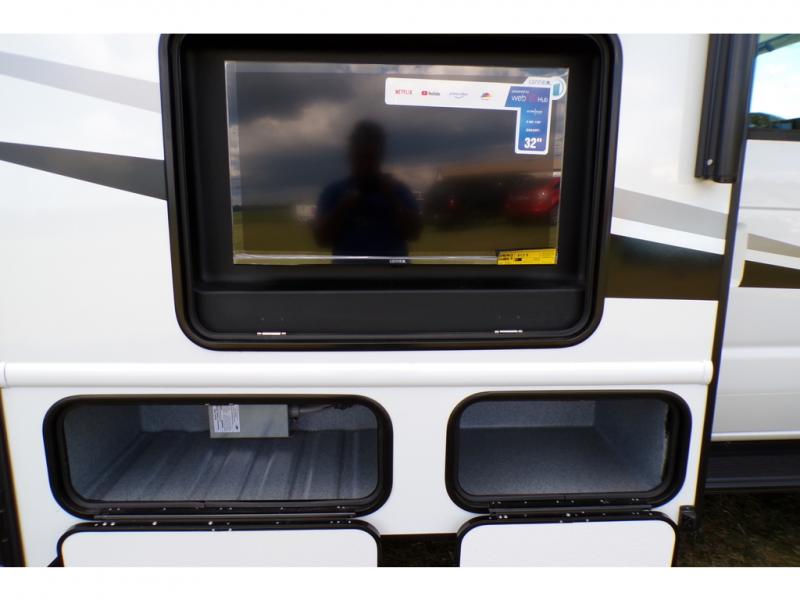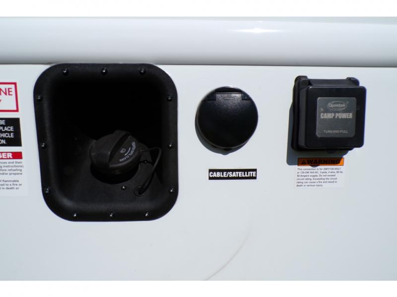 With any Entrada Class C gas motorhome from EAST TO WEST, the construction consists of a one-piece painted fiberglass front cap, a TPO roof membrane, and 2" Azdel composite sidewalls for added durability. There are rotocast exterior storage compartments with slam latch doors, along with an exterior LP Quick Connect, and a power awning with an LED light strip. You will also find rear and sideview cameras to help make maneuvering and parking your RV easier than ever. Inside, you'll feel right at home with soft close hardwood cabinet doors and drawers, a high-altitude tankless water heater, plus a 12V smart TV and USB ports to keep your electronics charged up!