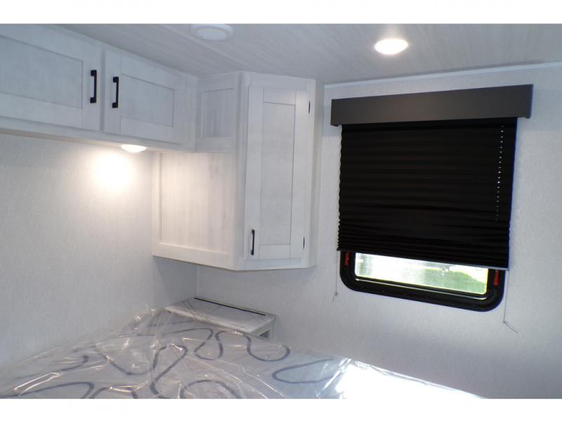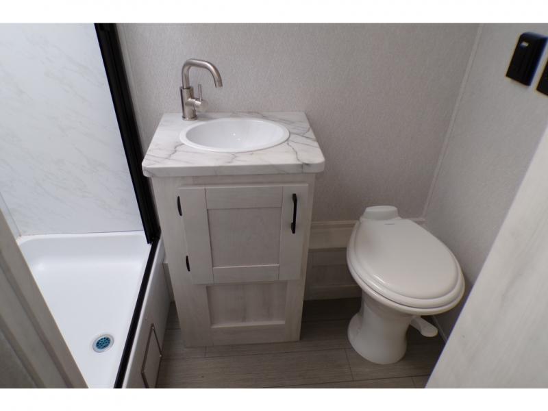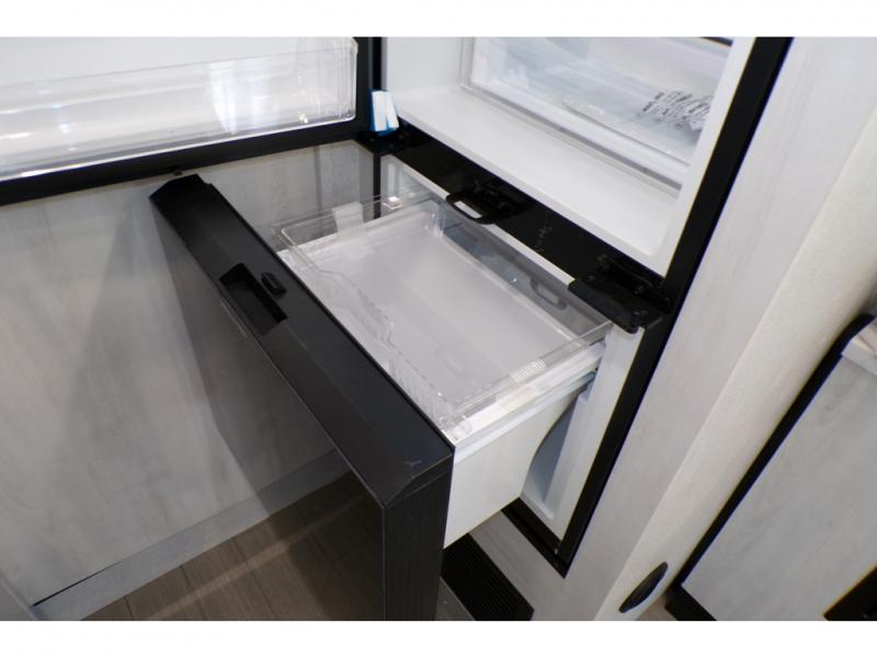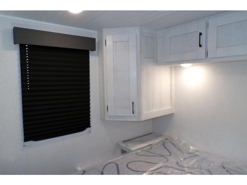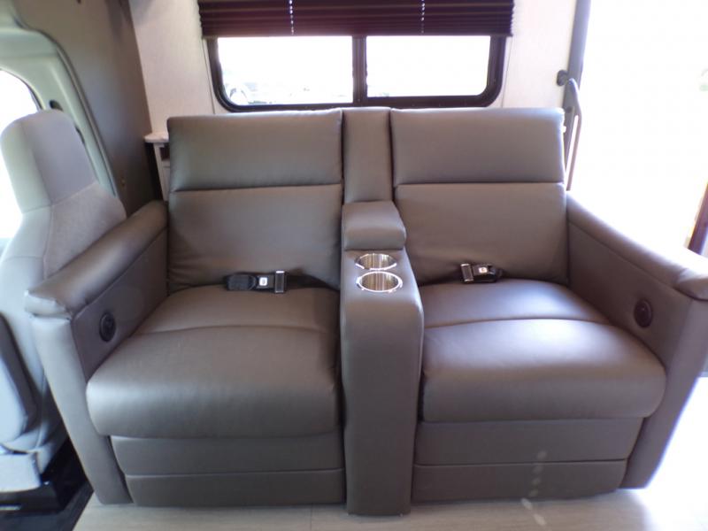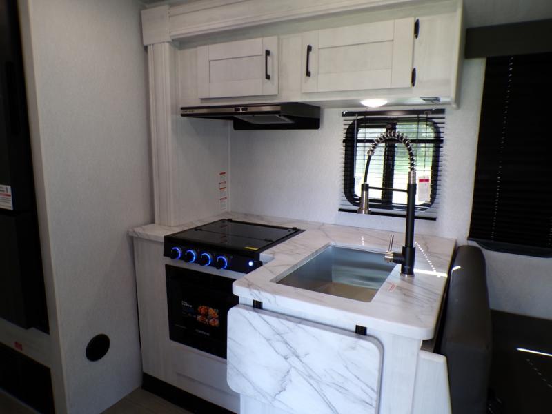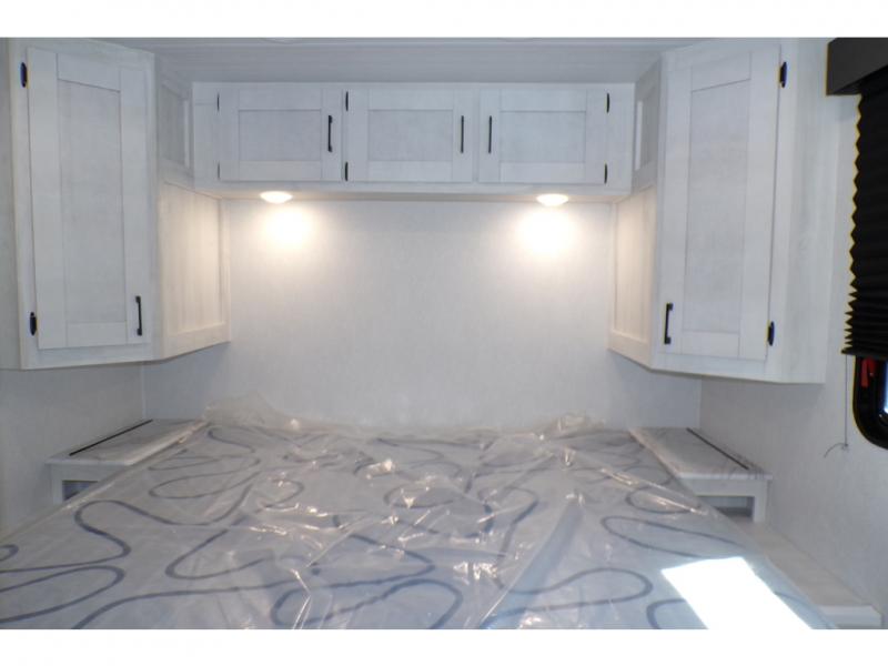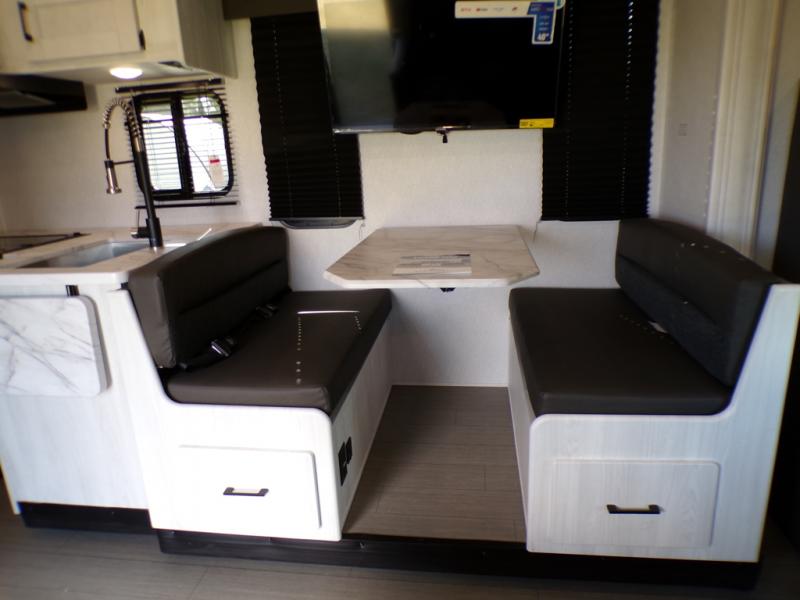 Comfort comes easy in this coach with theater seats and a slide out for more space! You'll find the booth dinette within the slide, along with the cooktop and convection microwave with air fryer technology. A double bowl sink will make clean up easier than ever, and there is a 12V dual swing refrigerator to keep your cold items fresh. The full bath with a 24" x 36" shower will let you clean up each day, and the rear private bedroom with a king bed is sure to provide a great night's rest! And any guests you may have can sleep on the 60" x 80" bunk-over cab or on the dinette once converted to sleeping space!