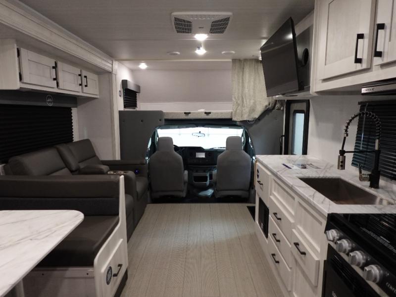 With any Entrada Class C gas motorhome from EAST TO WEST, the construction consists of an automotive painted fiberglass front cap, a Dicor DiFlex ll TPO roof membrane, and Azdel composite sidewalls for added durability. Some of the Entrada value package features include 12V tank heaters to camp during the cooler months, the Winegard Air 360+, plus backup and sideview cameras with a monitor for safety on and off the road. The interior offers a 7-foot interior height for a spacious feel, and 12V USB charge ports will keep your electronics powered up. Choose an Entrada for its tasteful design, attention to detail, bright interior and affordable price-point!