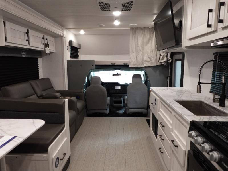 With any Entrada Class C gas motorhome from EAST TO WEST, the construction consists of an automotive painted fiberglass front cap, a Dicor DiFlex ll TPO roof membrane, and Azdel composite sidewalls for added durability. Some of the Entrada value package features include 12V tank heaters to camp during the cooler months, the Winegard Air 360+, plus backup and sideview cameras with a monitor for safety on and off the road. The interior offers a 7-foot interior height for a spacious feel, and 12V USB charge ports will keep your electronics powered up. Choose an Entrada for its tasteful design, attention to detail, bright interior and affordable price-point!
