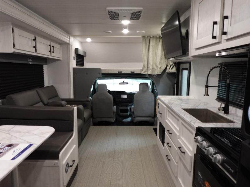 With any Entrada Class C gas motorhome from EAST TO WEST, the construction consists of an automotive painted fiberglass front cap, a Dicor DiFlex ll TPO roof membrane, and Azdel composite sidewalls for added durability. Some of the Entrada value package features include 12V tank heaters to camp during the cooler months, the Winegard Air 360+, plus backup and sideview cameras with a monitor for safety on and off the road. The interior offers a 7-foot interior height for a spacious feel, and 12V USB charge ports will keep your electronics powered up. Choose an Entrada for its tasteful design, attention to detail, bright interior and affordable price-point!