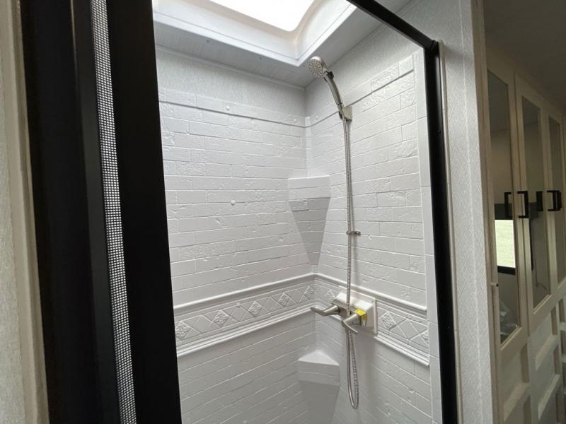 You can enjoy great adventures with your family and friends traveling in this Entrada Class C gas motorhome! This coach offers you spacious living thanks to two slides. In the main living area, the U-shaped dinette and sofa slides out to provide you with comfortable places to sit down and rest after you have been out exploring. You'll notice that the bedroom also feels open because of its queen bed slide, and the two wardrobes and linen closet across from the bed will surely provide plenty of storage space for your belongings with TV prep in between. The kitchen has a long countertop so you can prepare meals easily with a cooktop including three burners, a convection microwave beneath, a large sink and a 10.7 cu. ft. 12V refrigerator for your perishables. The bathroom is separated with a shower along one side and a private toilet and sink opposite for added convenience allowing two occupants to be using at once.