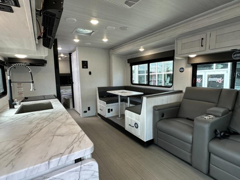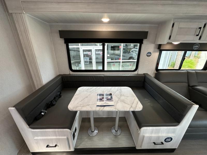 With any Entrada Class C gas motorhome from EAST TO WEST, the construction consists of an automotive painted fiberglass front cap, a Dicor DiFlex ll TPO roof membrane, and Azdel composite sidewalls for added durability. Some of the Entrada value package features include 12V tank heaters to camp during the cooler months, the Winegard Air 360+, plus backup and sideview cameras with a monitor for safety on and off the road. The interior offers a 7-foot interior height for a spacious feel, and 12V USB charge ports will keep your electronics powered up. Choose an Entrada for its tasteful design, attention to detail, bright interior and affordable price-point!