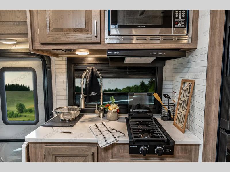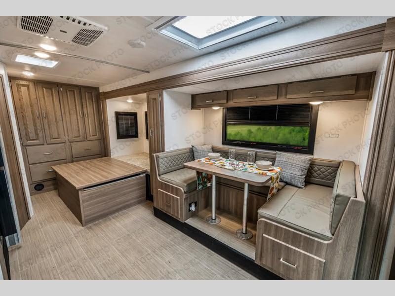 Whether you're traveling to the Grand Canyon or your local state park, you'll enjoy every minute in this coach! The swivel captain's seats can become a part of the living area once you park, and your guests can sit around the U-shaped dinette within the full-wall slide. There is a swing arm TV in the cab-over bunk to keep everyone entertained, or you can all head outdoors to sit under the 16' awning. Head back inside to rest on the queen bed that folds up for more space, and the bedroom wardrobe will allow you to keep your clothes and shoes tidy!