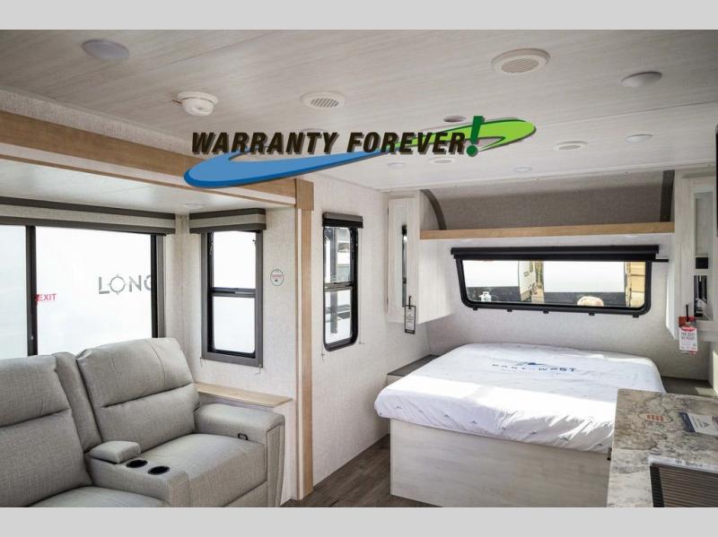 Each one of these EAST TO WEST Longitude travel trailers blends modern amenities with quality construction! They have a 5" vacuum bonded crowned roof, 2" sidewalls with fully laminated side boxes and endwalls, and Azdel both on the inside and outside of the sidewalls to protect you from the elements. The enclosed and heated underbelly extends the life of your unit, and the insulated forced air heated floors will keep your feet nice and warm. A universal docking station, a high output on-demand tankless water heater, and an amplified TV antenna with Wi-Fi prep makes life at the campground easier. You can rinse your feet or bikes off with the outside shower that comes with hot and cold water. The diamond plate front rock guard will hold up through all of your great adventures. Come find the one that suits you best!