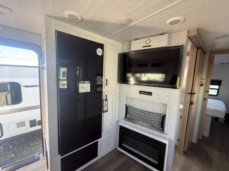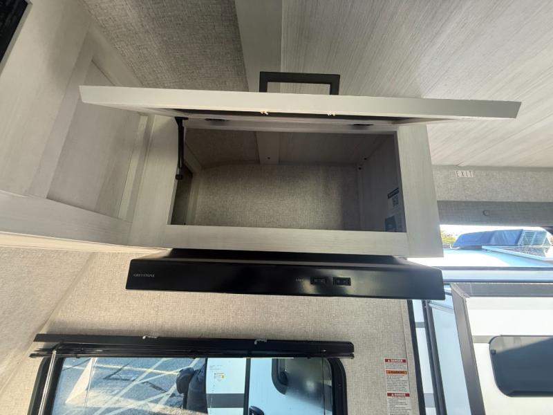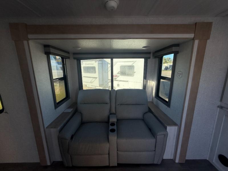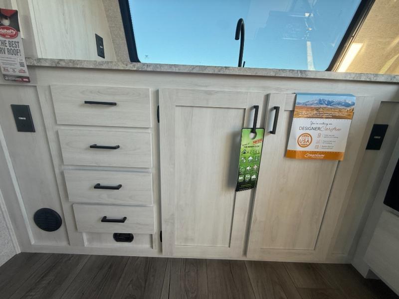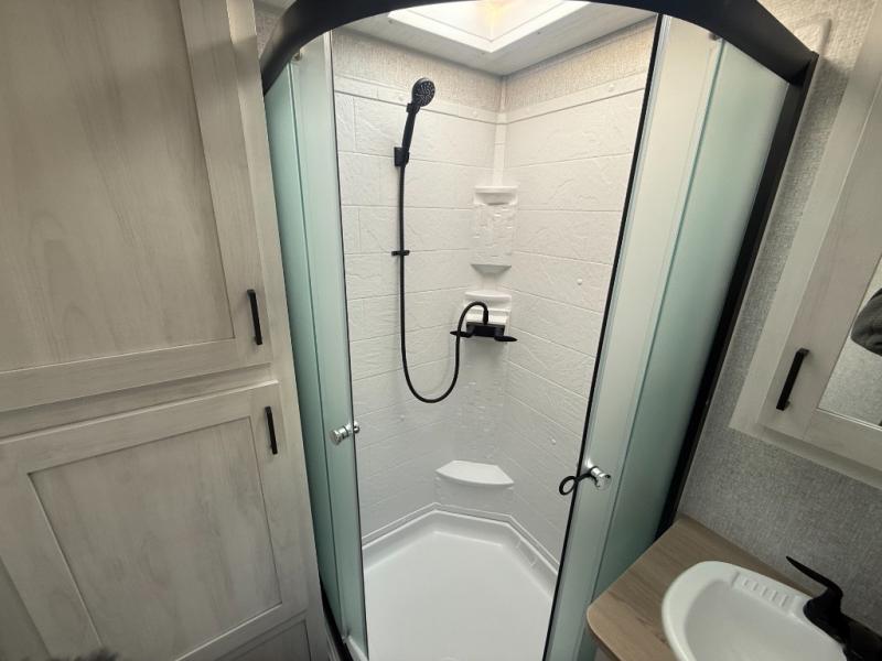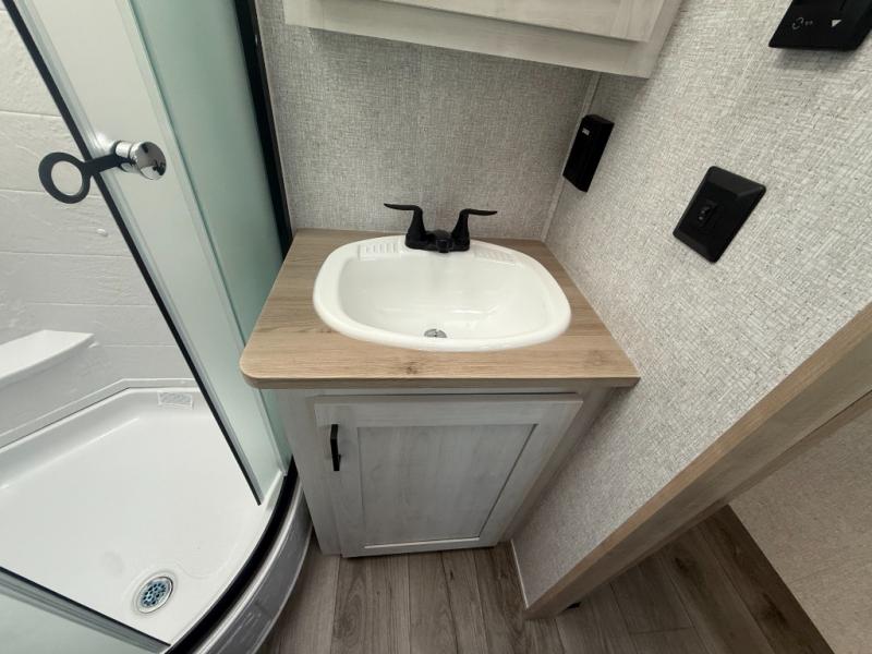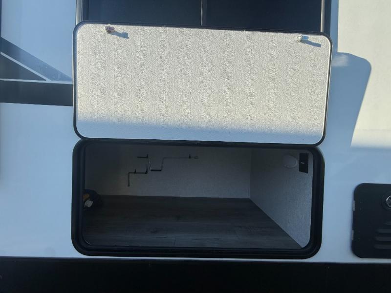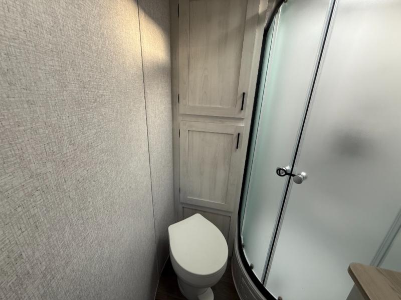 If you've been looking for a couple's trailer to take to the campground, this is the one! You will love the generous counter space in the front kitchen to prepare meals each day, and the tri-fold sofa with a removable dinette table provides a place to dine at. This furniture will also double as sleeping space for any guests you have, or you can choose the optional theater seat. A full bath with a radius shower, a sink, toilet, and linen closet will let you freshen up without having to use the camp's facilities. Head to the rear private bedroom for a great night's rest on the queen bed with dual wardrobes and overhead cabinets for your things. The exterior amenities are just as numerous as the interior with a universal docking station, cargo storage, and 1.6 cu. ft. outdoor refrigerator plus more!