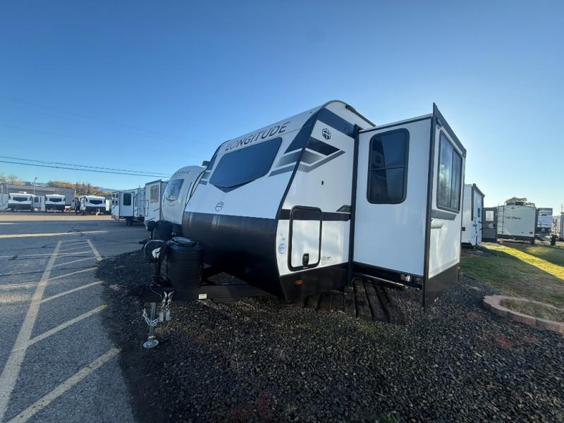 Each one of these EAST TO WEST Longitude travel trailers blends modern amenities with quality construction! They have a 5" vacuum bonded crowned roof, 2" sidewalls with fully laminated side boxes and endwalls, and Azdel both on the inside and outside of the sidewalls to protect you from the elements. The enclosed and heated underbelly extends the life of your unit, and the insulated forced air heated floors will keep your feet nice and warm. A universal docking station, a high output on-demand tankless water heater, and an amplified TV antenna with Wi-Fi prep makes life at the campground easier. You can rinse your feet or bikes off with the outside shower that comes with hot and cold water. The diamond plate front rock guard will hold up through all of your great adventures. Come find the one that suits you best!