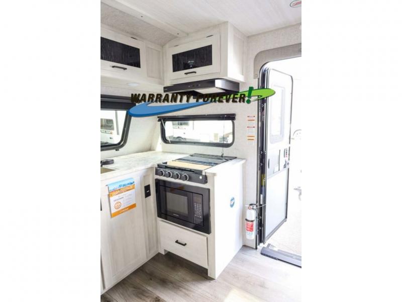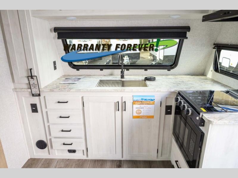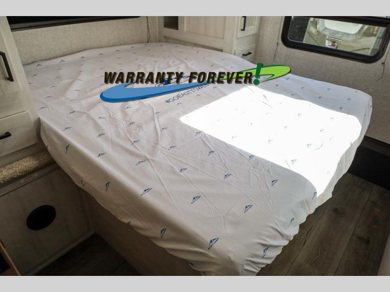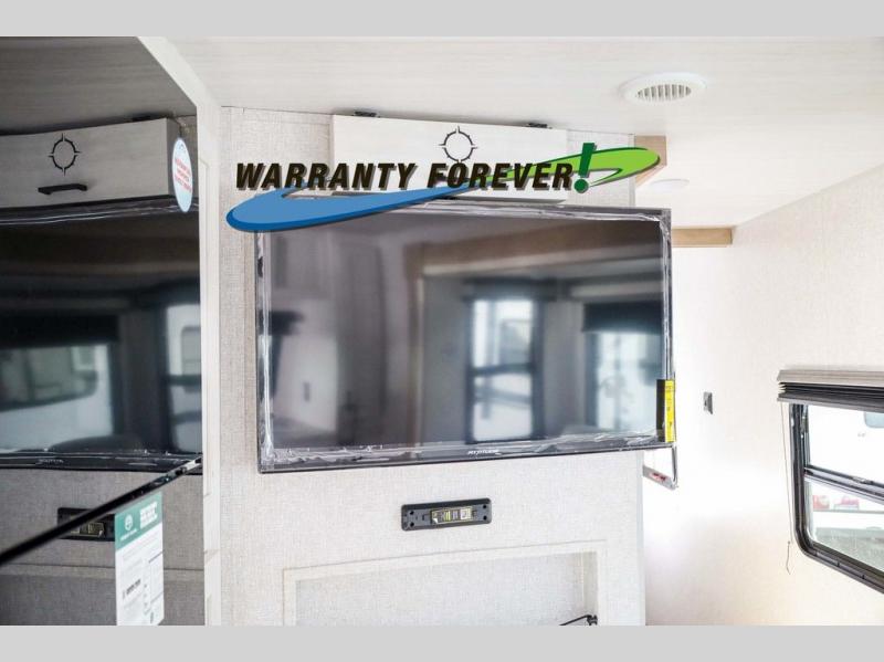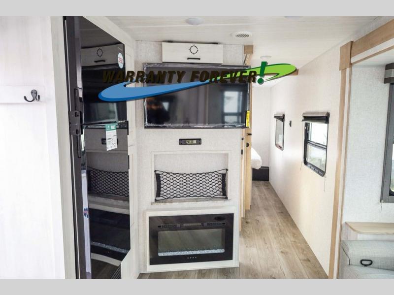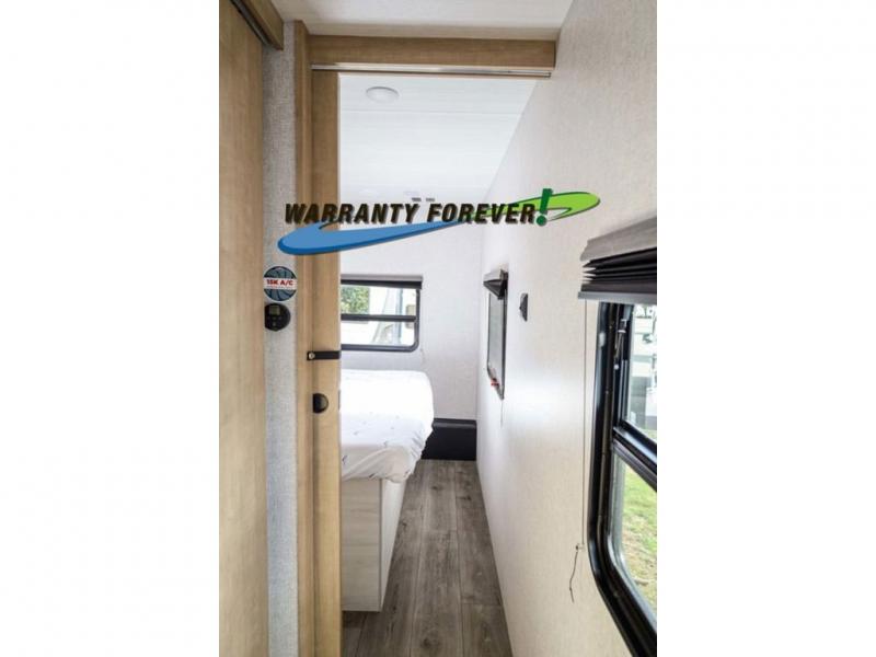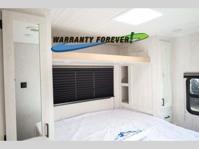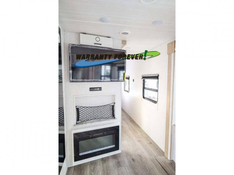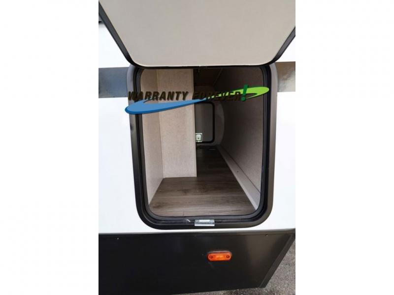 If you've been looking for a couple's trailer to take to the campground, this is the one! You will love the generous counter space in the front kitchen to prepare meals each day, and the tri-fold sofa with a removable dinette table provides a place to dine at. This furniture will also double as sleeping space for any guests you have, or you can choose the optional theater seat. A full bath with a radius shower, a sink, toilet, and linen closet will let you freshen up without having to use the camp's facilities. Head to the rear private bedroom for a great night's rest on the queen bed with dual wardrobes and overhead cabinets for your things. The exterior amenities are just as numerous as the interior with a universal docking station, cargo storage, and 1.6 cu. ft. outdoor refrigerator plus more!