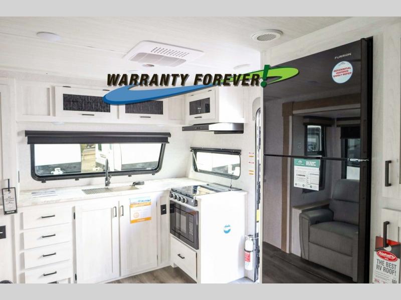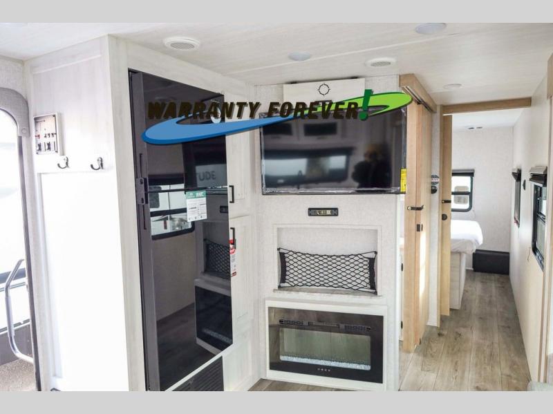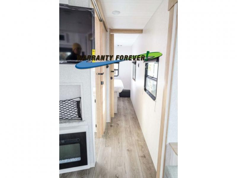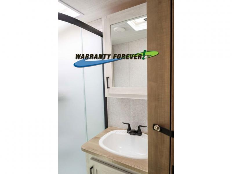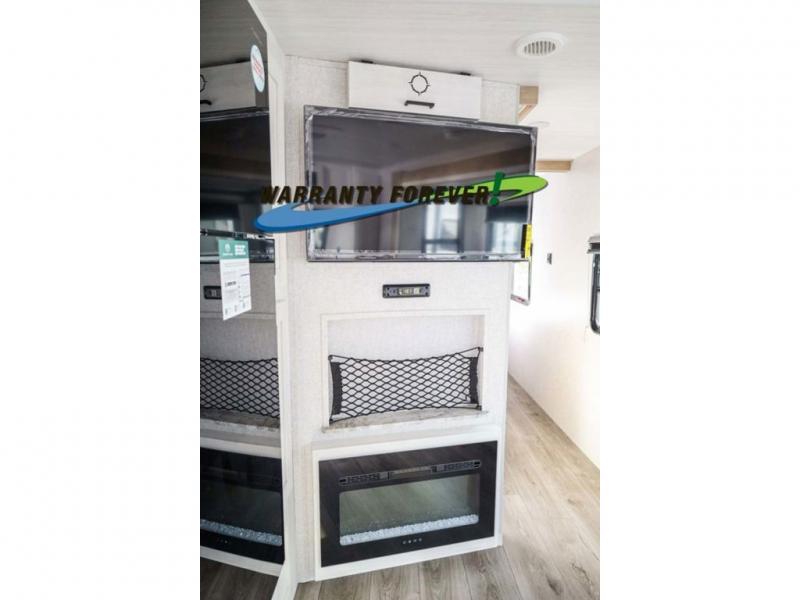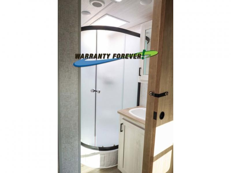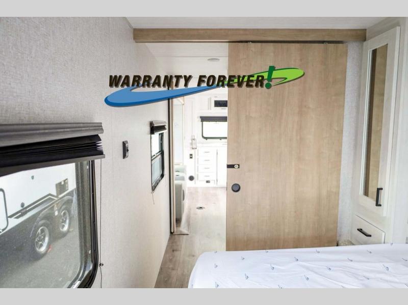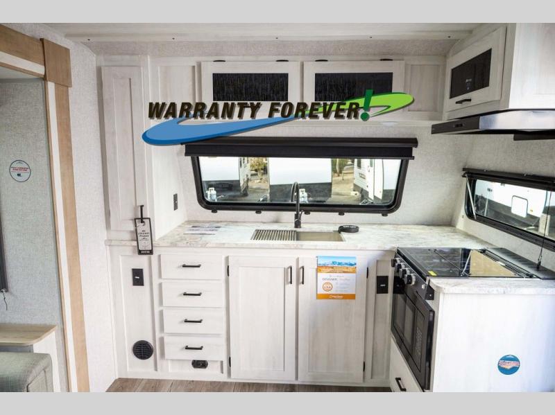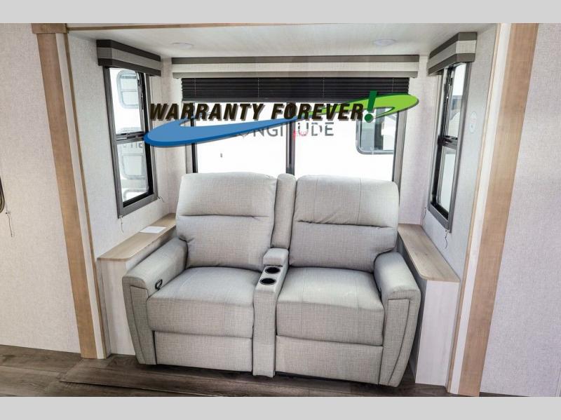 If you've been looking for a couple's trailer to take to the campground, this is the one! You will love the generous counter space in the front kitchen to prepare meals each day, and the tri-fold sofa with a removable dinette table provides a place to dine at. This furniture will also double as sleeping space for any guests you have, or you can choose the optional theater seat. A full bath with a radius shower, a sink, toilet, and linen closet will let you freshen up without having to use the camp's facilities. Head to the rear private bedroom for a great night's rest on the queen bed with dual wardrobes and overhead cabinets for your things. The exterior amenities are just as numerous as the interior with a universal docking station, cargo storage, and 1.6 cu. ft. outdoor refrigerator plus more!