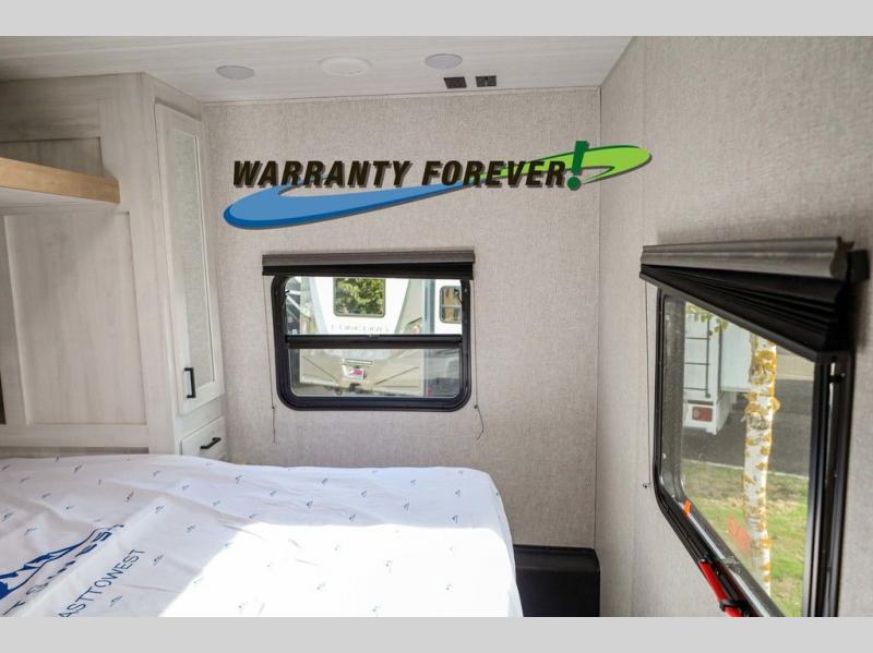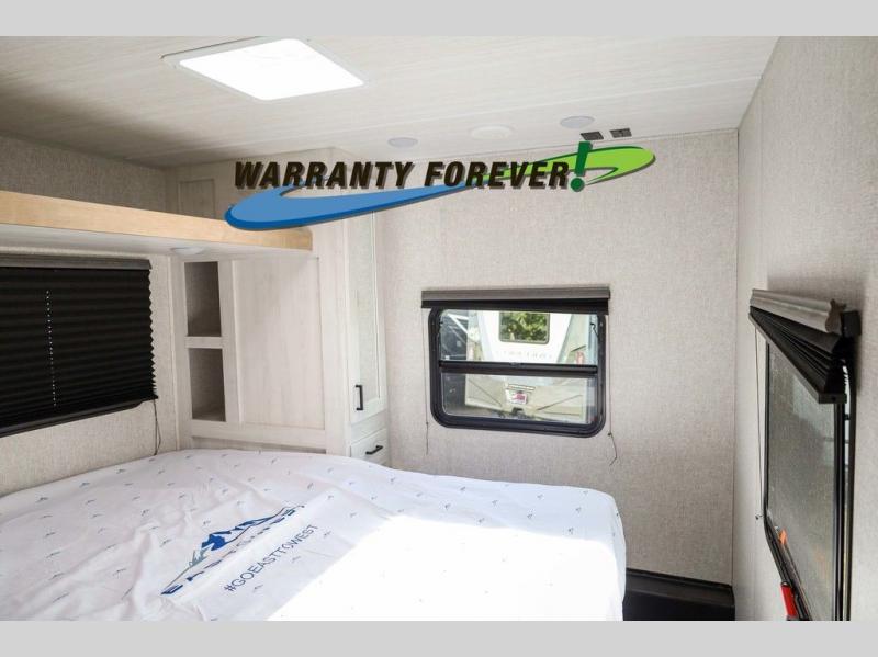 Each one of these EAST TO WEST Longitude travel trailers blends modern amenities with quality construction! They have a 5" vacuum bonded crowned roof, 2" sidewalls with fully laminated side boxes and endwalls, and Azdel both on the inside and outside of the sidewalls to protect you from the elements. The enclosed and heated underbelly extends the life of your unit, and the insulated forced air heated floors will keep your feet nice and warm. A universal docking station, a high output on-demand tankless water heater, and an amplified TV antenna with Wi-Fi prep makes life at the campground easier. You can rinse your feet or bikes off with the outside shower that comes with hot and cold water. The diamond plate front rock guard will hold up through all of your great adventures. Come find the one that suits you best!