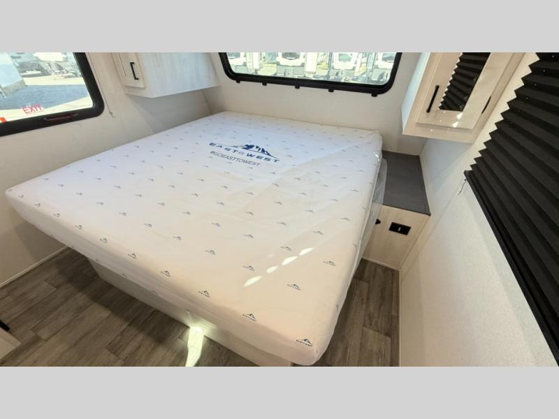 Each one of these EAST TO WEST Longitude travel trailers blends modern amenities with quality construction! They have a 5" vacuum bonded crowned roof, 2" sidewalls with fully laminated side boxes and endwalls, and Azdel both on the inside and outside of the sidewalls to protect you from the elements. The enclosed and heated underbelly extends the life of your unit, and the insulated forced air heated floors will keep your feet nice and warm. A universal docking station, a high output on-demand tankless water heater, and an amplified TV antenna with Wi-Fi prep makes life at the campground easier. You can rinse your feet or bikes off with the outside shower that comes with hot and cold water. The diamond plate front rock guard will hold up through all of your great adventures. Come find the one that suits you best!