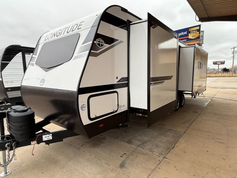 Each one of these EAST TO WEST Longitude travel trailers blends modern amenities with quality construction! They have a 5" vacuum bonded roof, 2" sidewalls with fully laminated slide boxes and end walls, and laminated sidewalls with Azdel composite to help protect you from the elements. The enclosed and heated underbelly extends the life of your unit, and the insulated forced air heated floors will keep your feet nice and warm. A universal docking station, a high output on-demand tankless water heater, and an amplified TV antenna with Wi-Fi prep make life at the campground easier. You can rinse your feet or bikes off with the outside shower that comes with hot and cold water. The diamond plate front rock guard will hold up through all of your great adventures. Come find the one that suits you best!