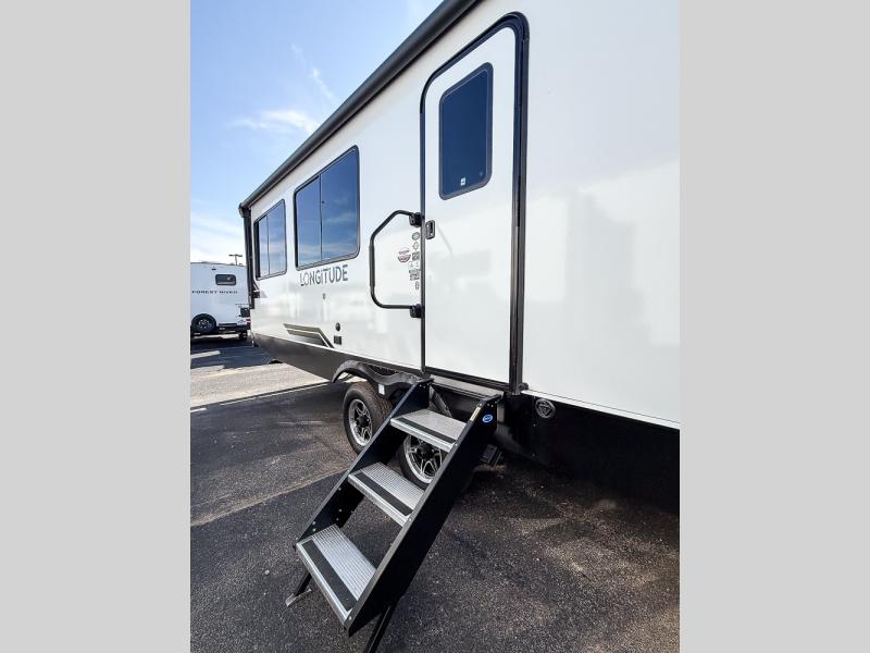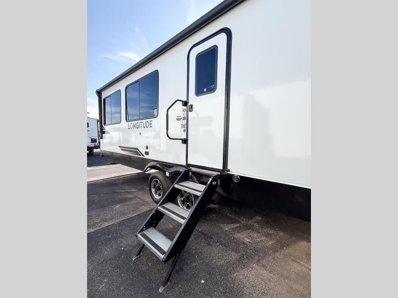 Each one of these EAST TO WEST Longitude travel trailers blends modern amenities with quality construction! They have a 5" vacuum bonded roof, 2" sidewalls with fully laminated slide boxes and end walls, and laminated sidewalls with Azdel composite to help protect you from the elements. The enclosed and heated underbelly extends the life of your unit, and the insulated forced air heated floors will keep your feet nice and warm. A universal docking station, a high output on-demand tankless water heater, and an amplified TV antenna with Wi-Fi prep make life at the campground easier. You can rinse your feet or bikes off with the outside shower that comes with hot and cold water. The diamond plate front rock guard will hold up through all of your great adventures. Come find the one that suits you best!