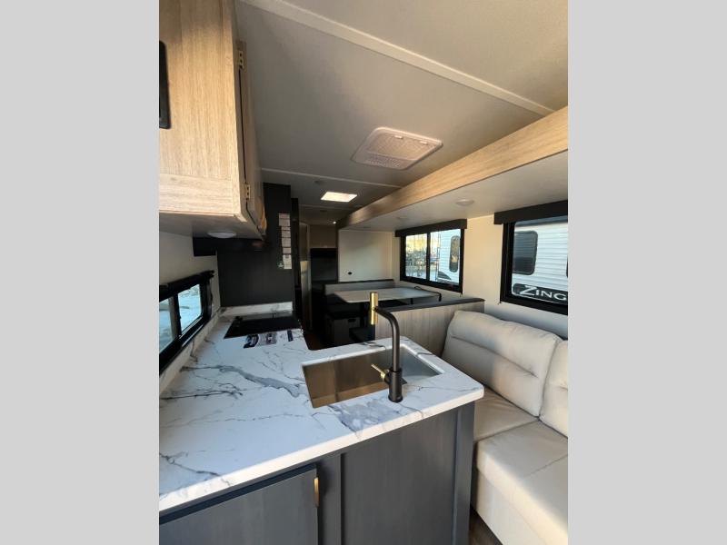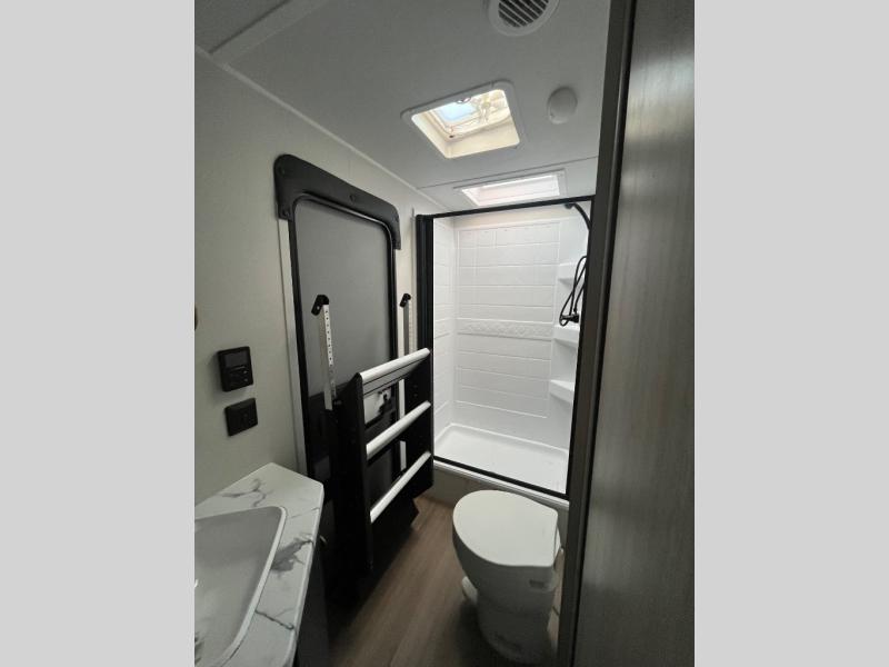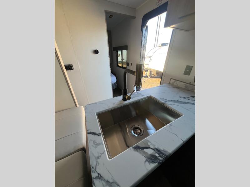 With any Silver Lake travel trailer by EAST TO WEST, you will enjoy comfort features at every turn. There is an outside shower with hot and cold water, a detachable power cord, roof mounted solar prep and backup camera prep, plus a fully finished pass-through storage so you can bring along extra camp gear. Inside, you'll appreciate the 6' 9" ceiling height, along with LED lighting with motion sensor, seamless countertops with no T-mold, plus residential inspired kitchen and living spaces. Each model also includes USB and C-port charging stations, plus they are cable/satellite ready if you choose to add entertainment options.
