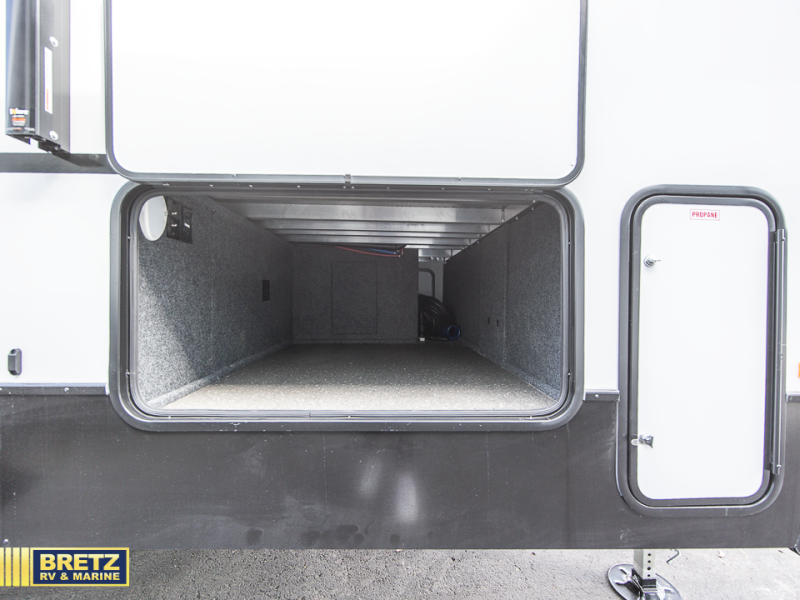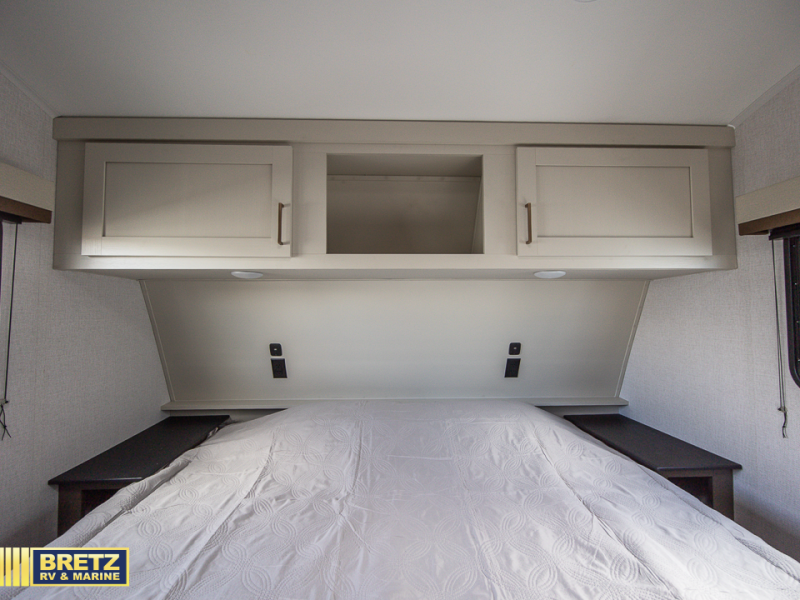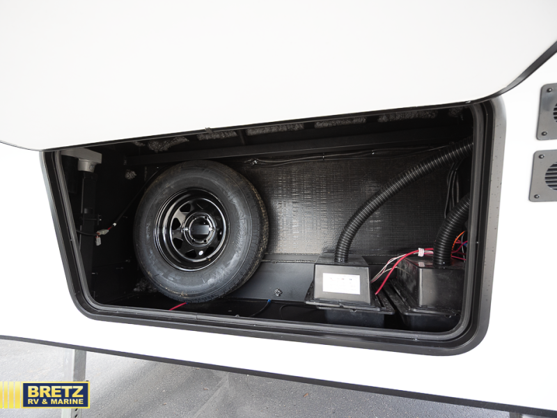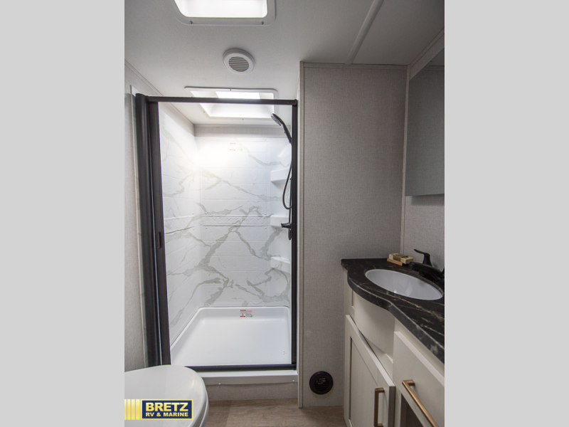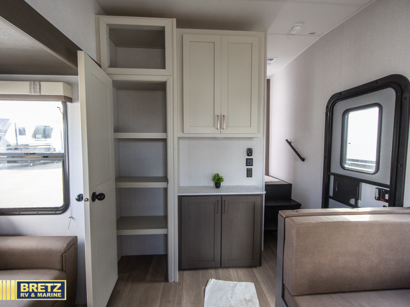 Get ready for adventures with a fifth wheel that is perfect for exploring. This compact vehicle combines comfort and functionality for the ultimate getaway. The rear kitchen is a culinary haven, so you can cook up a storm on the range, stash gear in the overhead cabinet, and wash up at the sink. Keep drinks cold in the 12V fridge, enjoy meals in the cozy booth dinette, and stock up in the pantry. The hide-a-bed sofa is a comfy spot to chill and sleep. The full bathroom is a refreshing oasis where you can get ready for the day or unwind after a big adventure. Store essentials in the closet. The front bedroom is a peaceful retreat with a king bed and nightstands on each side of the bed. The 14'6" awning is perfect for outdoor chilling and enjoying the view.