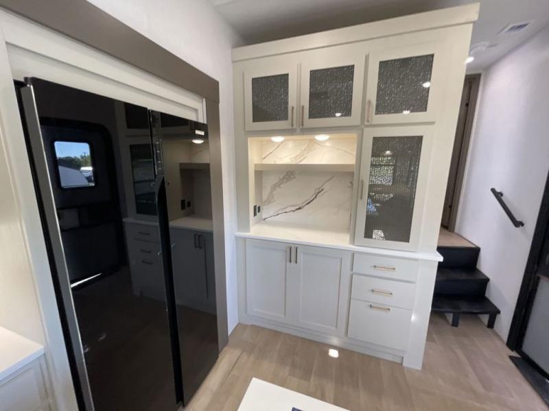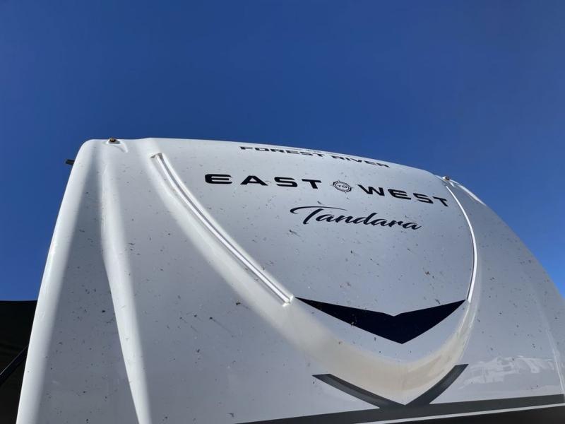 With any Tandara fifth wheel by EAST TO WEST, you will enjoy many standard features to make each trip enjoyable. The Tandara Exterior Luxury Package includes a universal all-in-one docking station, an automatic leveling system, metal slam latch cargo doors, and a 200W solar panel for off-grid capabilities. You will also appreciate the Tandara Climate Package with ductless flooring, dual attic vents, plus a heated and enclosed underbelly for added protection. Inside, you'll find a flush floor kitchen slide, Slow Rise roller shades, solid surface kitchen countertops, and more stand-out features included in the Tandara Interior Luxury Package.