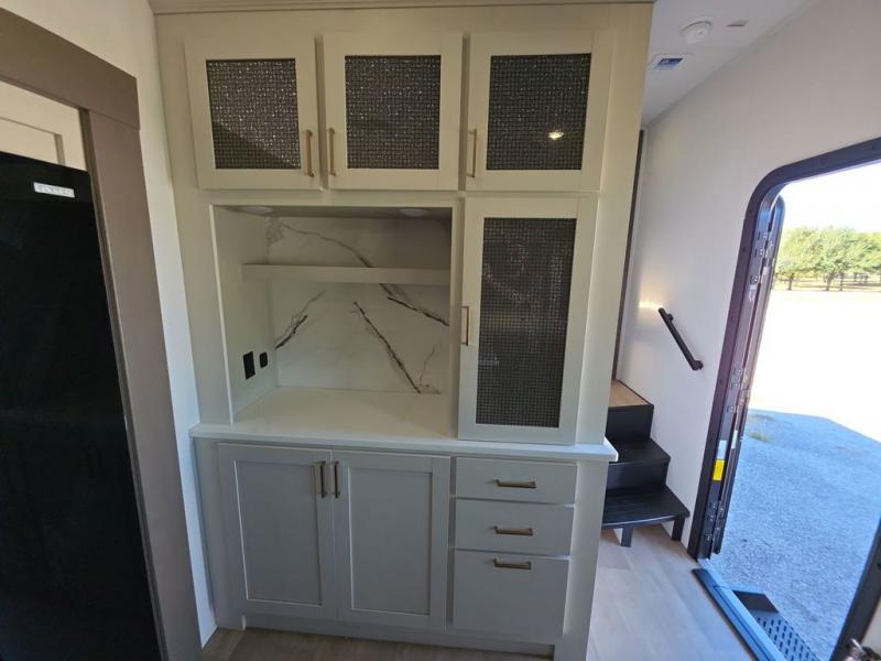 With any Tandara fifth wheel by EAST TO WEST, you will enjoy many standard features to make each trip enjoyable. The Tandara Exterior Luxury Package includes a universal all-in-one docking station, an automatic leveling system, metal slam latch cargo doors, and a 200W solar panel for off-grid capabilities. You will also appreciate the Tandara Climate Package with ductless flooring, dual attic vents, plus a heated and enclosed underbelly for added protection. Inside, you'll find a flush floor kitchen slide, Slow Rise roller shades, solid surface kitchen countertops, and more stand-out features included in the Tandara Interior Luxury Package.