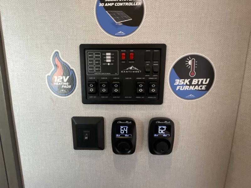 With any Tandara fifth wheel by EAST TO WEST, you will enjoy many standard features to make each trip enjoyable. The Tandara Exterior Luxury Package includes a universal all-in-one docking station, an automatic leveling system, metal slam latch cargo doors, and a 200W solar panel for off-grid capabilities. You will also appreciate the Tandara Climate Package with ductless flooring, dual attic vents, plus a heated and enclosed underbelly for added protection. Inside, you'll find a flush floor kitchen slide, Slow Rise roller shades, solid surface kitchen countertops, and more stand-out features included in the Tandara Interior Luxury Package.