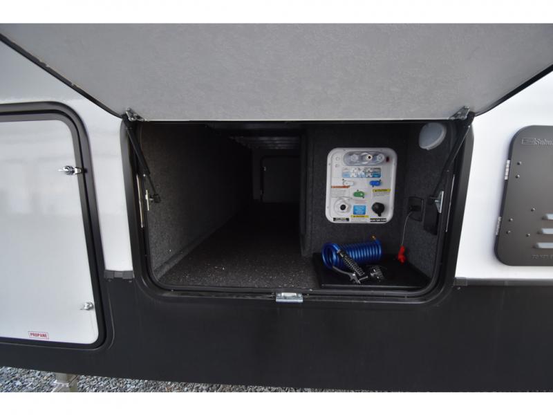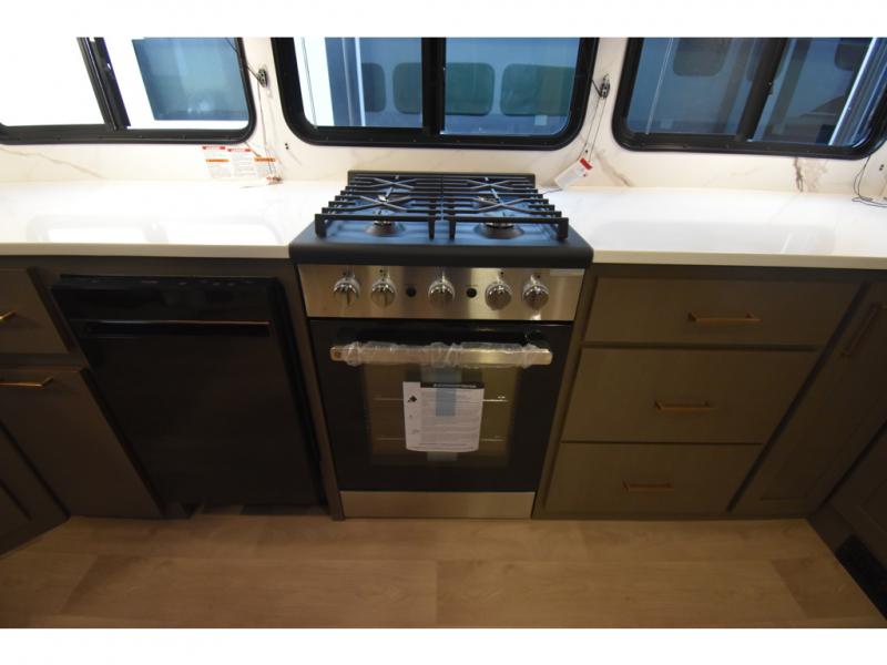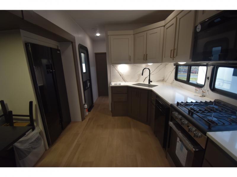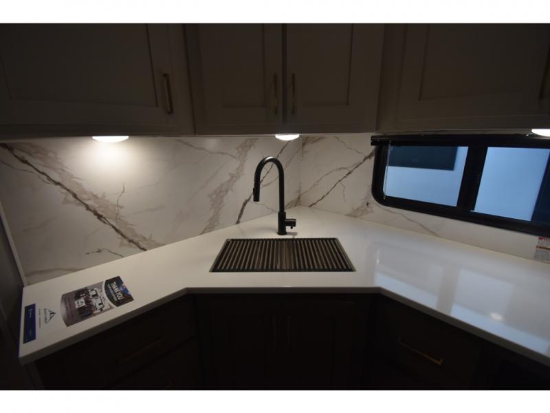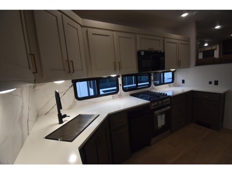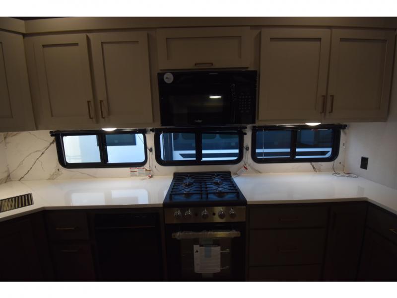With any Tandara fifth wheel by EAST TO WEST, you will enjoy many standard features to make each trip enjoyable. The Tandara Exterior Luxury Package includes a universal all-in-one docking station, an automatic leveling system, metal slam latch cargo doors, and a 200W solar panel for off-grid capabilities. You will also appreciate the Tandara Climate Package with ductless flooring, dual attic vents, plus a heated and enclosed underbelly for added protection. Inside, you'll find a flush floor kitchen slide, Slow Rise roller shades, solid surface kitchen countertops, and more stand-out features included in the Tandara Interior Luxury Package.