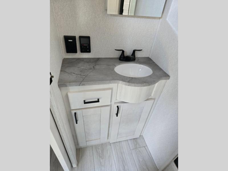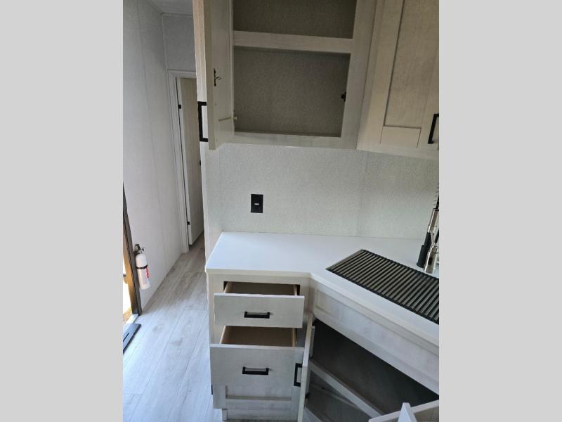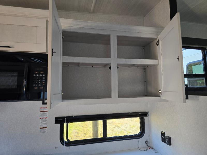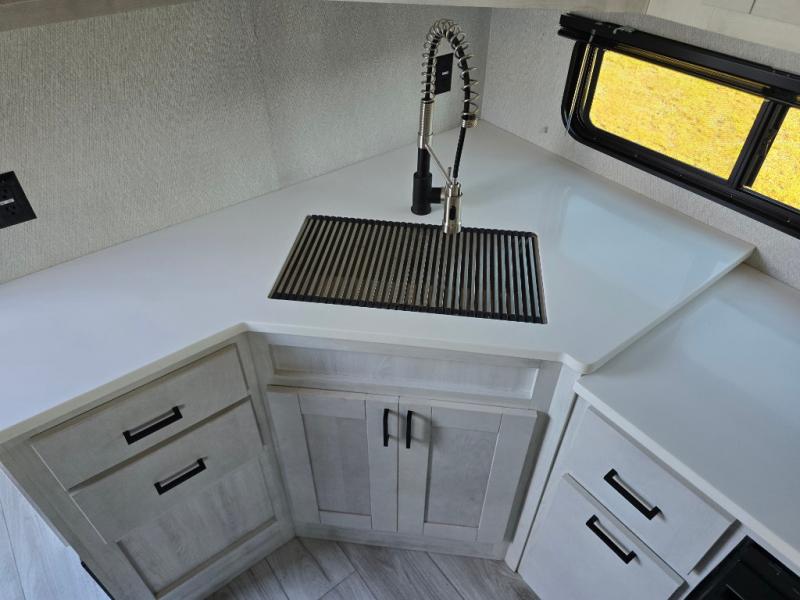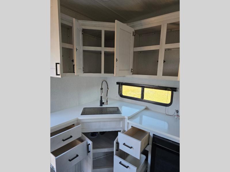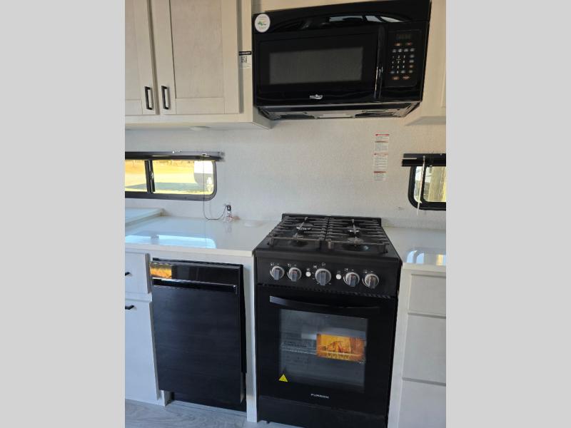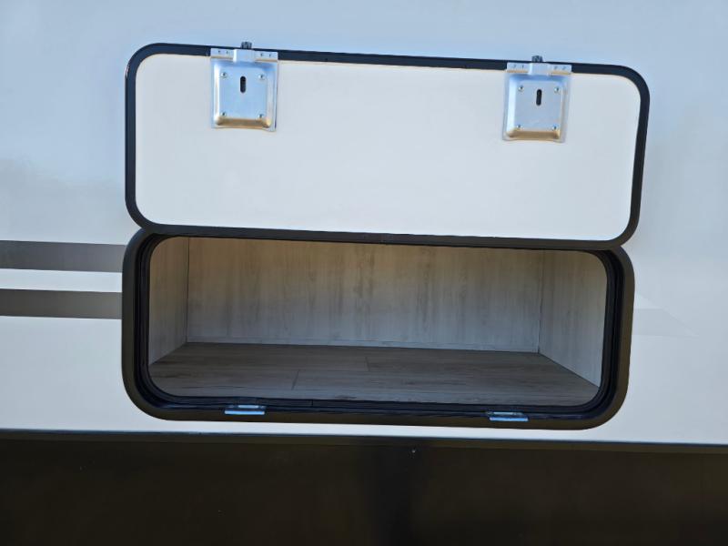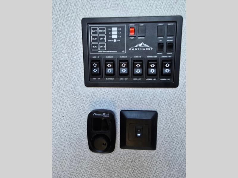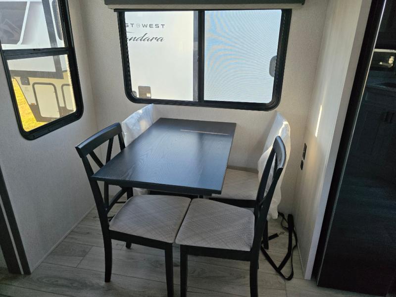With any Tandara fifth wheel by EAST TO WEST, you will enjoy many standard features to make each trip enjoyable. The Tandara Exterior Luxury Package includes a universal all-in-one docking station, an automatic leveling system, metal slam latch cargo doors, and a 200W solar panel for off-grid capabilities. You will also appreciate the Tandara Climate Package with ductless flooring, dual attic vents, plus a heated and enclosed underbelly for added protection. Inside, you'll find a flush floor kitchen slide, Slow Rise roller shades, solid surface kitchen countertops, and more stand-out features included in the Tandara Interior Luxury Package.