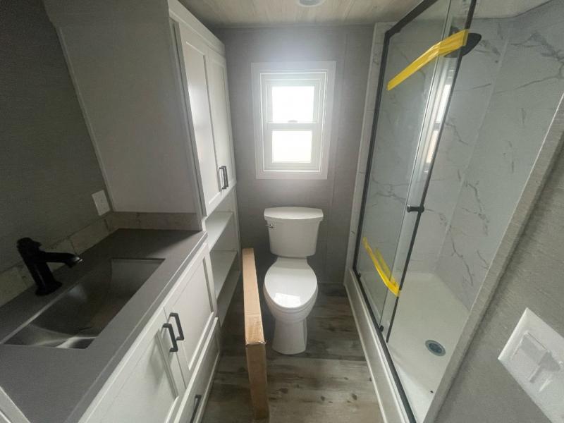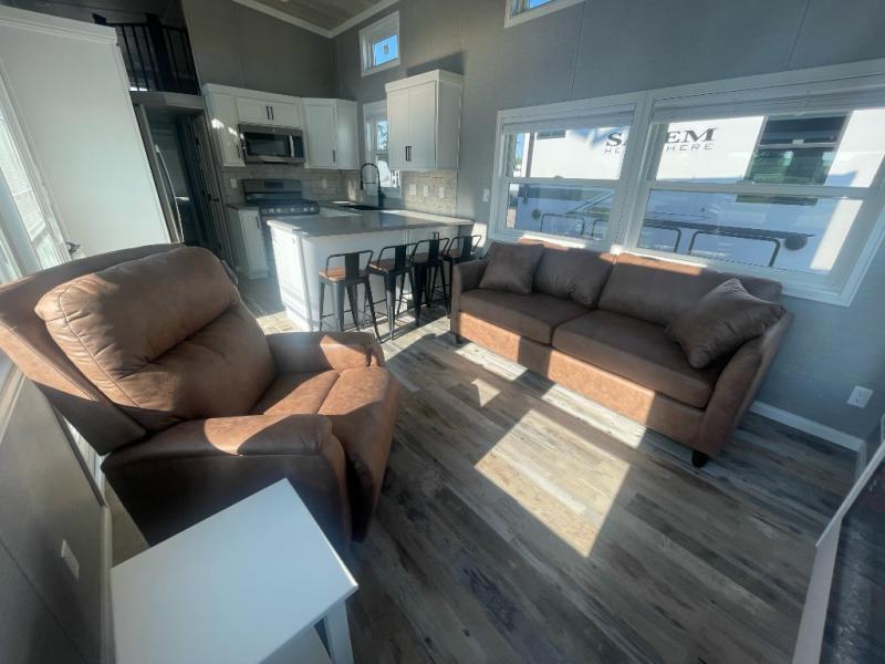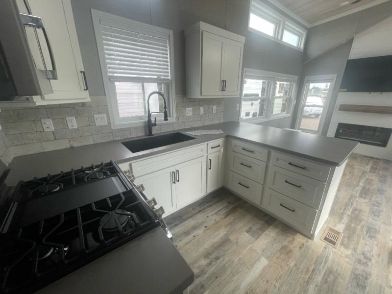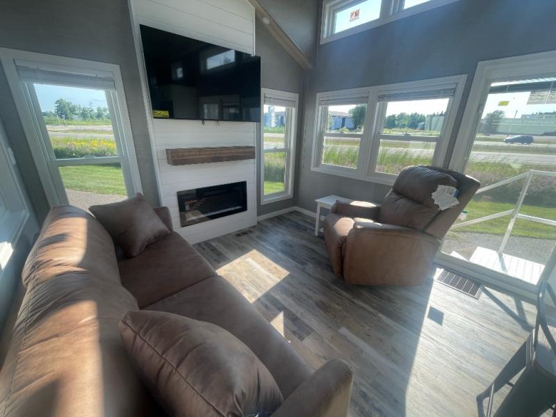 Elevation's park models are the home away from home you need! Built with vinyl siding and architectural shingles, these models have a maximum square footage of 400 square feet and they use every bit of space. A 6' vinyl patio door with porch light and shed dormers provide visual interest as well as an open airy feeling. You will appreciate many features like the custom high-end residential cabinetry, GE appliances, cordless blinds, and a ceiling fan in the living room. The standard 43" LG Smart TV provides entertainment, while USB outlets throughout offer an easy place to charge your electronics. Each unit can be customized with a wide variety of colors, window designs, bathroom layouts, and other personalized modifications to the floorplan.