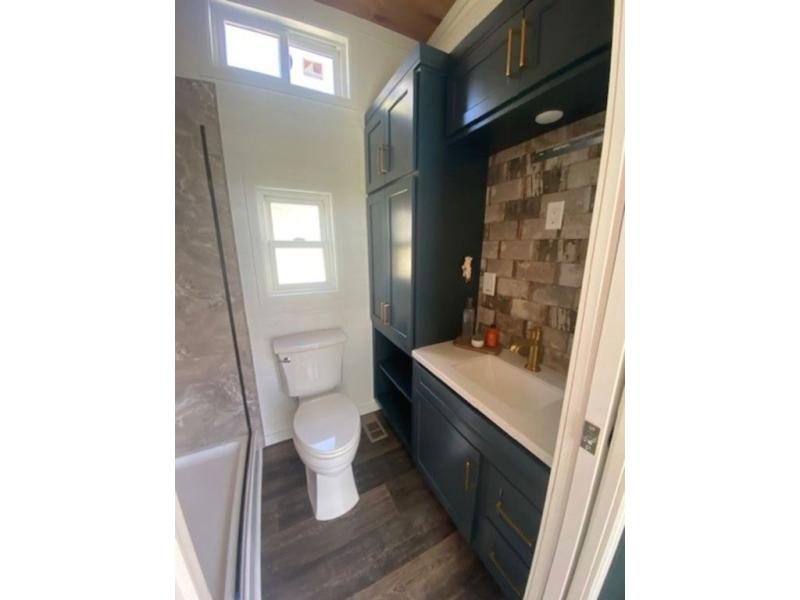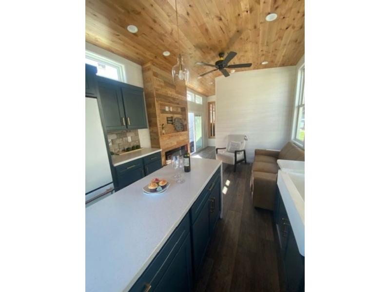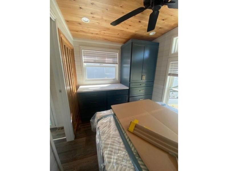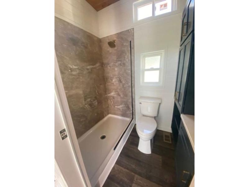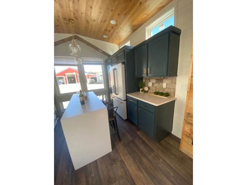 Elevation's park models are the home away from home you need! Built with premium vinyl siding and a standing seam metal roof, these models have a maximum square footage of 400 square feet for efficient space. A 6' vinyl patio door with built-in blinds and shed dormers provide visual interest as well as an open airy feeling. You will love the real hardwood trim package, solid surface countertops throughout, the Kohler industrial kitchen faucet, and high-end staggered cabinetry. There are also LG Smart TVs in the living room and bedroom, full-height tile or stone backsplash, a Serta mattress, and many more interior comforts. Each unit can be customized with a wide variety of colors, window designs, bathroom layouts, and other personalized modifications to the floorplan.