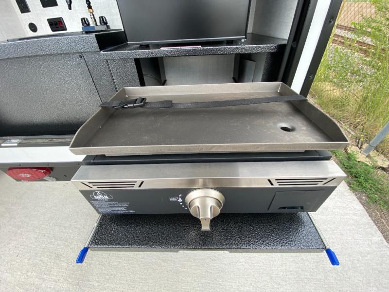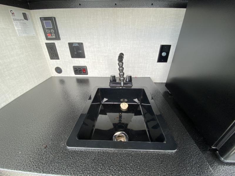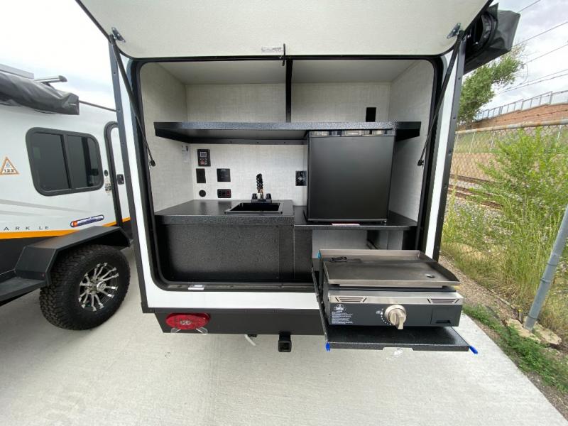 This compact travel trailer is easy to tow and easy to love! There are fender steps so that you can reach the top of your unit, which will especially be helpful if you choose to add the optional Thule roof rack system. You will also find a 6.5" manual awning outside or you can choose the optional batwing awning. The rear kitchen includes a griddle which attaches to the LP Quick Connect, a sink, plus an overhead shelf for food storage. An optional 1.7 cu. ft. refrigerator can be added for even more convenience. Inside, you'll enjoy the dual 28" x 84" mattresses with a converted 56" x 84" "California Queen" sleeping space for a great night's rest. There are also front overhead shelves with shelving below plus floor to ceiling shelves in the back so nothing gets left behind.