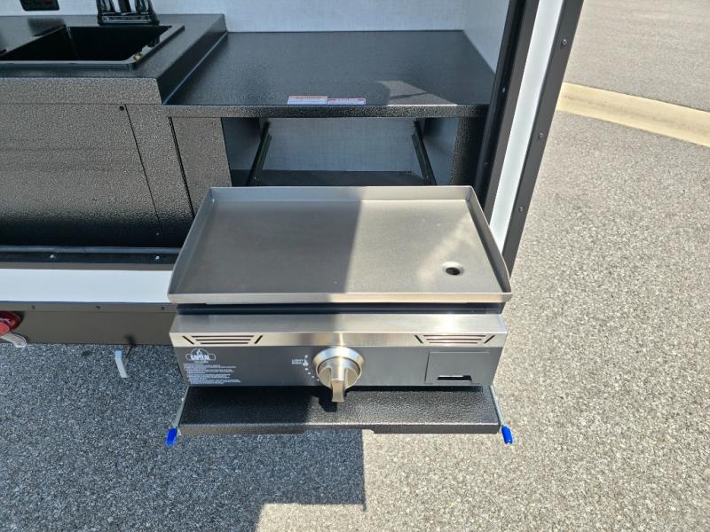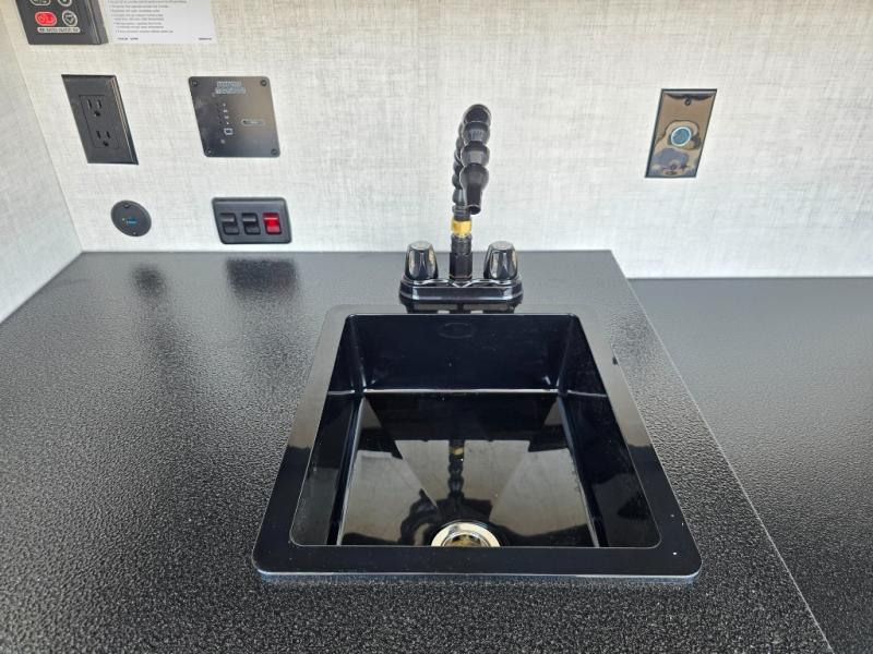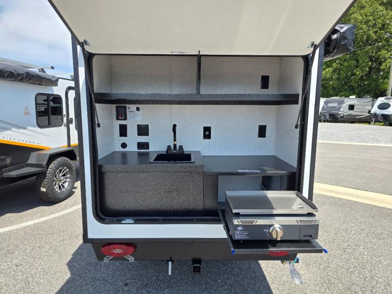 This compact travel trailer is easy to tow and easy to love! There are fender steps so that you can reach the top of your unit, which will especially be helpful if you choose to add the optional Thule roof rack system. You will also find a 6.5" manual awning outside or you can choose the optional batwing awning. The rear kitchen includes a griddle which attaches to the LP Quick Connect, a sink, plus an overhead shelf for food storage. An optional 1.7 cu. ft. refrigerator can be added for even more convenience. Inside, you'll enjoy the dual 28" x 84" mattresses with a converted 56" x 84" "California Queen" sleeping space for a great night's rest. There are also front overhead shelves with shelving below plus floor to ceiling shelves in the back so nothing gets left behind.