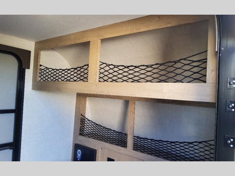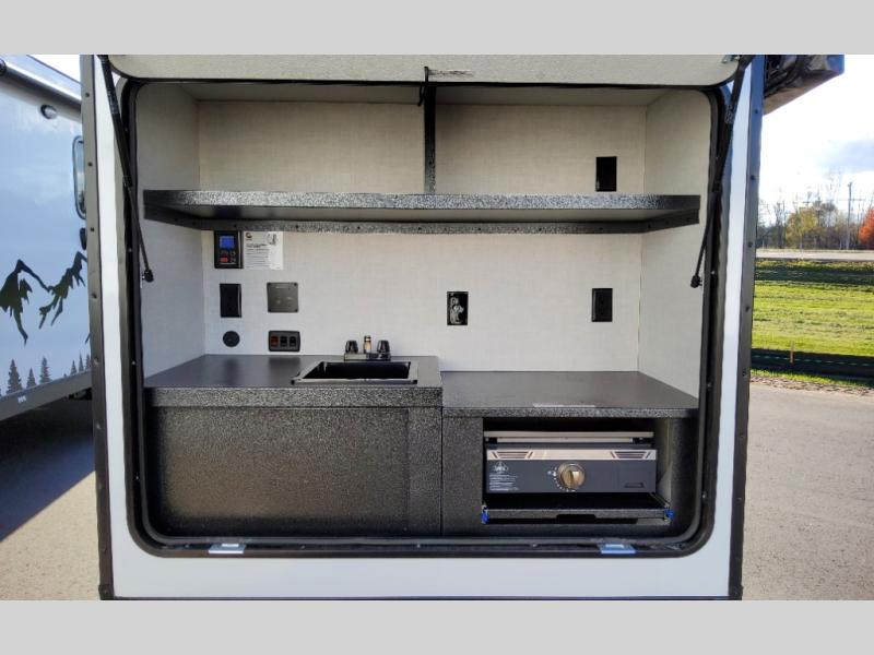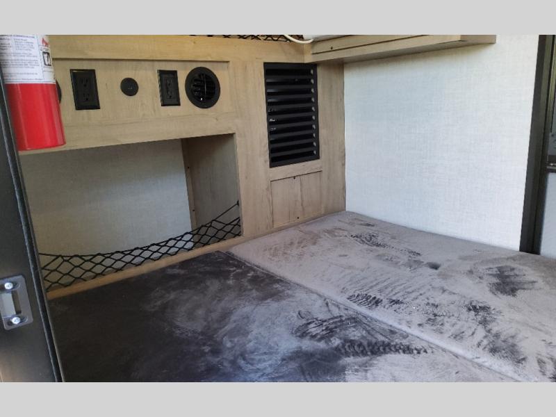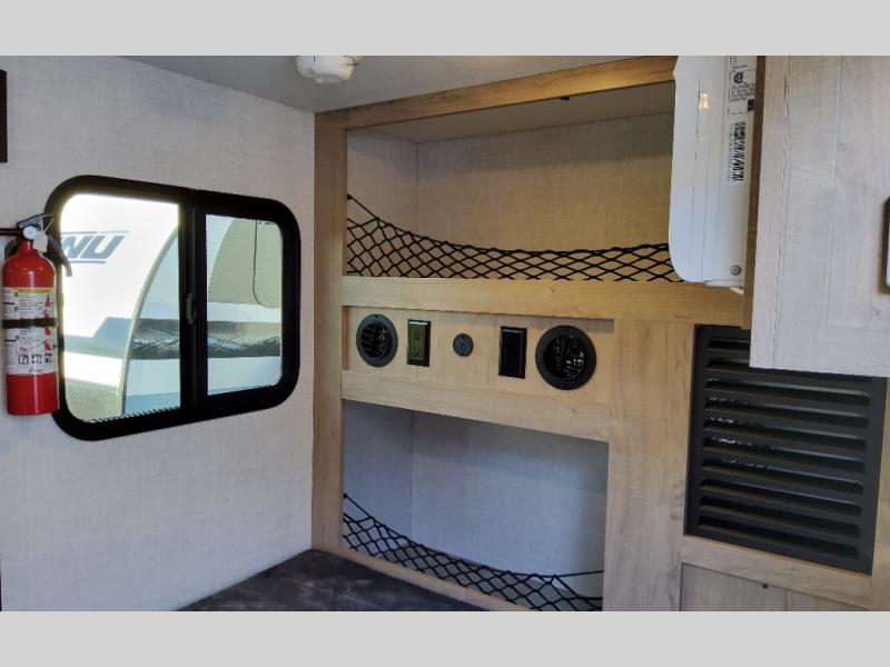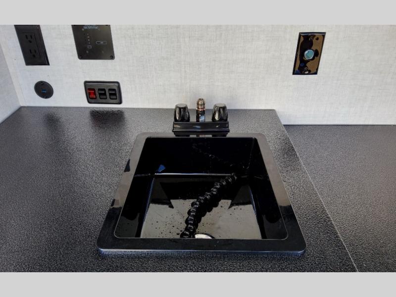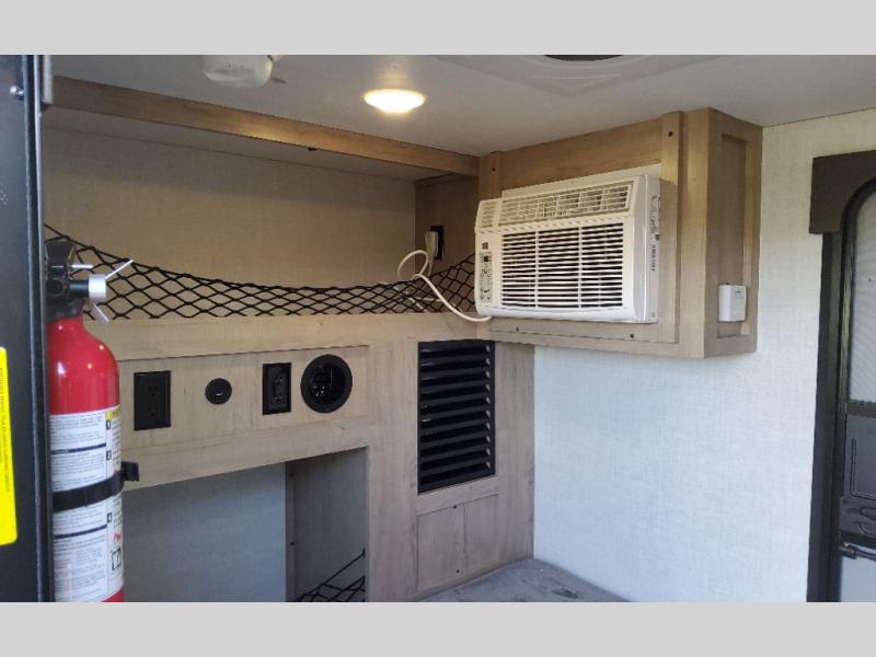This compact travel trailer is easy to tow and easy to love! There are fender steps so that you can reach the top of your unit, which will especially be helpful if you choose to add the optional Thule roof rack system. You will also find a 6.5" manual awning outside or you can choose the optional batwing awning. The rear kitchen includes a griddle which attaches to the LP Quick Connect, a sink, plus an overhead shelf for food storage. An optional 1.7 cu. ft. refrigerator can be added for even more convenience. Inside, you'll enjoy the dual 28" x 84" mattresses with a converted 56" x 84" "California Queen" sleeping space for a great night's rest. There are also front overhead shelves with shelving below plus floor to ceiling shelves in the back so nothing gets left behind.