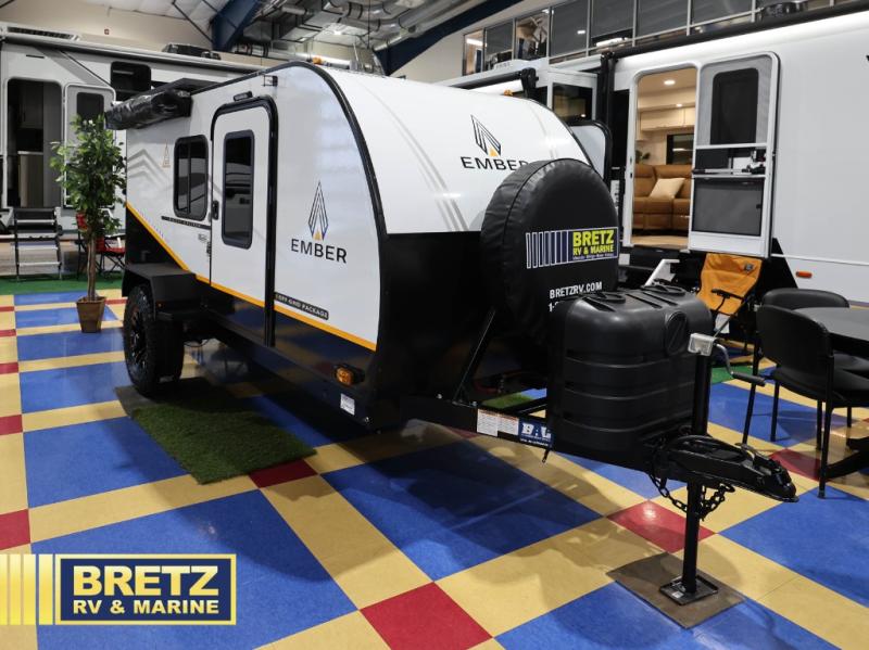 With any E-Series Spark LE travel trailer by Ember RV you will enjoy a lightweight RV with all the "Essentials" needed for memorable trips in the great outdoors! Each model is constructed with durable laminated Azdel Onboard composite walls, floor and rooftop, and a gel-coated fiberglass exterior. The Dexter TORFLEX torsion axle with E-Z lube hubs and forward self-adjusting electric brakes plus nitrogen-filled off-road tires will provide smooth towing, even on tougher terrain. You will appreciate the Congoleum DiamondFlor "carpetless" interior that is easy to clean, and there are USB-A/C and 12V ports to keep your electronics powered up. If you're looking for off-grid capabilities, you might want to choose the optional Off-Grid Solar Package with 400 total watts of solar panels, a 2,000W Pure Sine wave inverter, and a Victron MPPT solar controller!