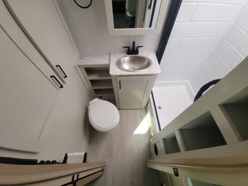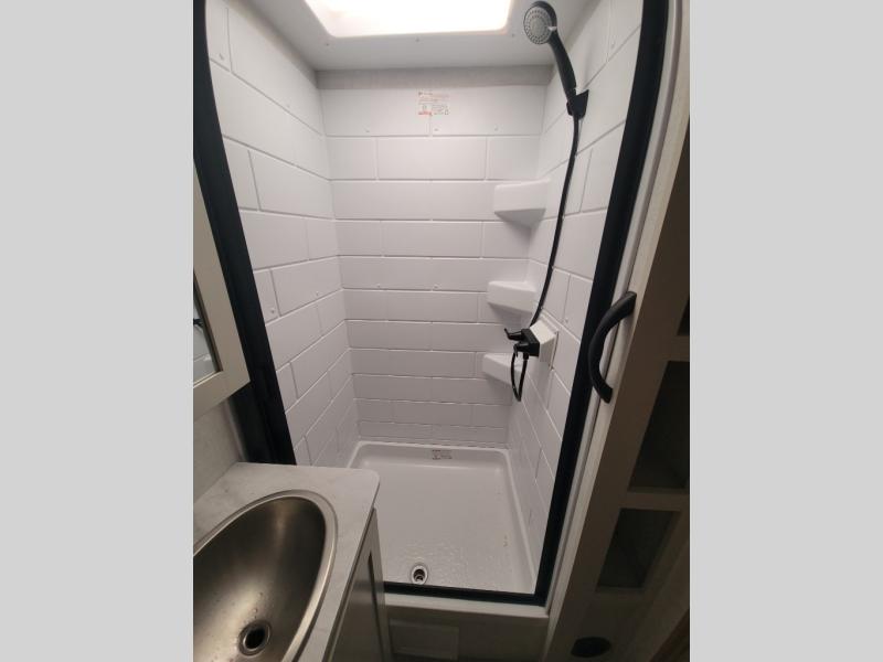 With any E-Series travel trailer by Ember RV you will enjoy a lightweight RV with all the "Essentials" needed for memorable trips in the great outdoors! Each model is constructed with durable laminated Azdel Onboard composite walls, a full walkable roof with a one-piece Tufflex PVC roofing material, and a gel-coated fiberglass exterior. The Dexter axles with E-Z lube hubs and forward self-adjusting electric brakes plus Goodyear Endurance tires will provide a smooth tow from home to campground. You will appreciate the Congoleum DiamondFlor "carpetless" interior that is easy to clean, and the hardwood framed cabinet doors will create a more residential feel. Each model includes a tankless on-demand water heater for endless hot showers and an 18,000 BTU Max Cool "Whisper Quiet" A/C, which is the largest single A/C in its class! If you're looking for off-grid capabilities, you might want to choose the optional Off-Grid Solar Package with 400 total watts of solar panels, a 2,000W Pure Sine wave inverter, and a Victron MPPT solar controller!