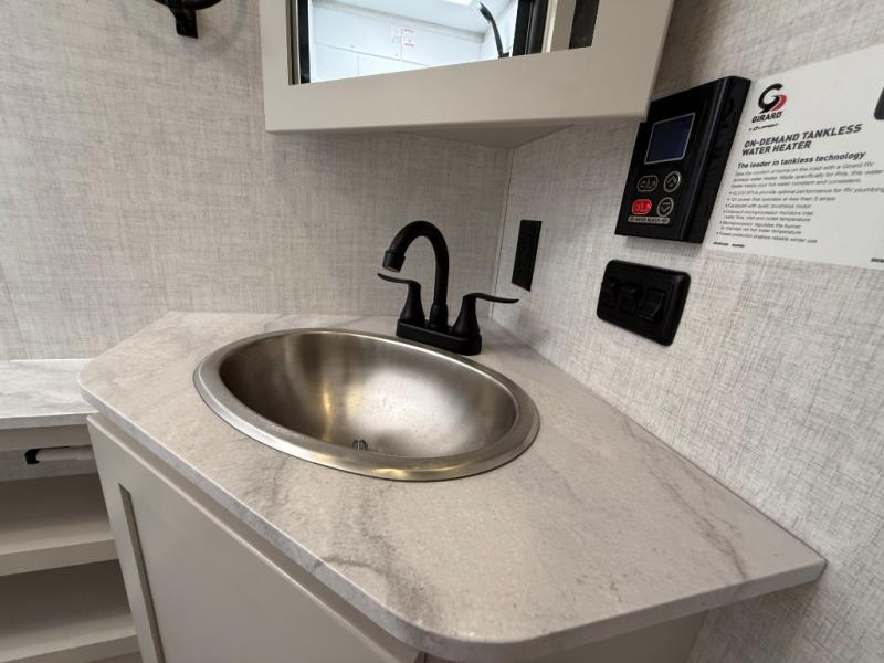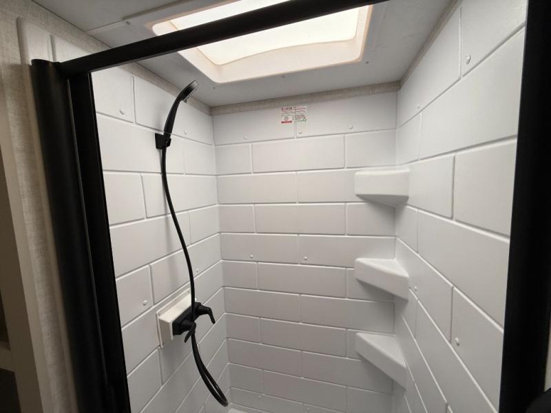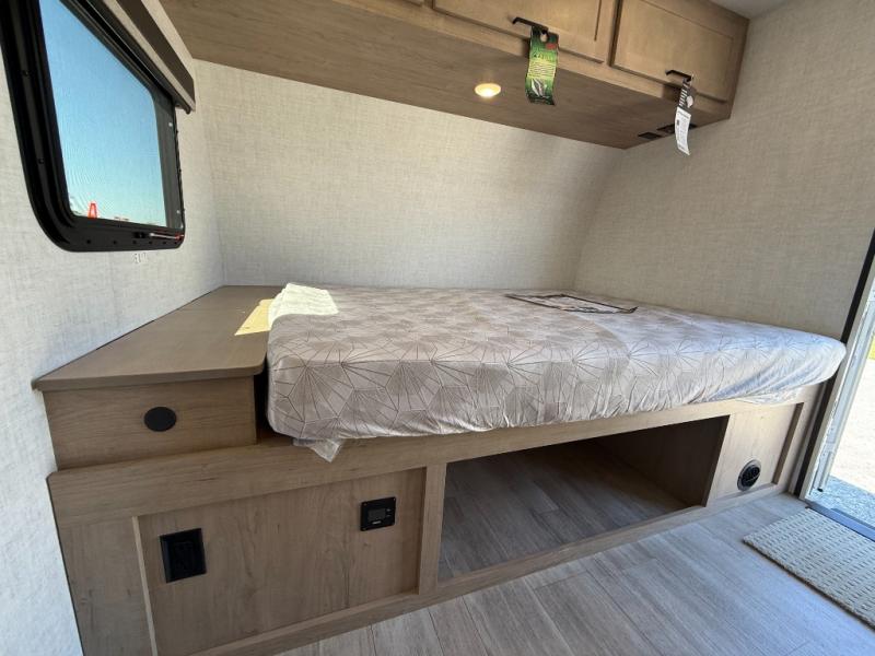 With any E-Series travel trailer by Ember RV you will enjoy a lightweight RV with all the "Essentials" needed for memorable trips in the great outdoors! Each model is constructed with durable laminated Azdel Onboard composite walls, a full walkable roof with a one-piece Tufflex PVC roofing material, and a gel-coated fiberglass exterior. The Dexter axles with E-Z lube hubs and forward self-adjusting electric brakes plus Goodyear Endurance tires will provide a smooth tow from home to campground. You will appreciate the Congoleum DiamondFlor "carpetless" interior that is easy to clean, and the hardwood framed cabinet doors will create a more residential feel. Each model includes a tankless on-demand water heater for endless hot showers and an 18,000 BTU Max Cool "Whisper Quiet" A/C, which is the largest single A/C in its class! If you're looking for off-grid capabilities, you might want to choose the optional Off-Grid Solar Package with 400 total watts of solar panels, a 2,000W Pure Sine wave inverter, and a Victron MPPT solar controller!
