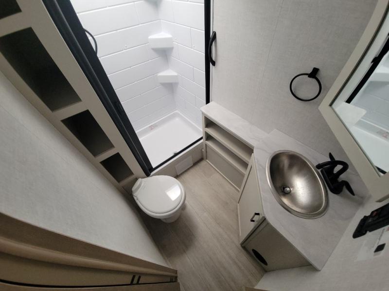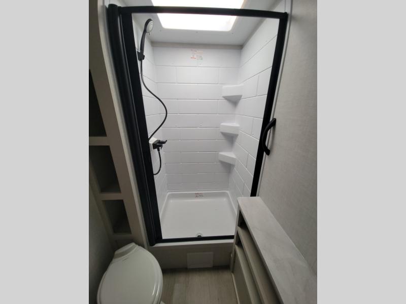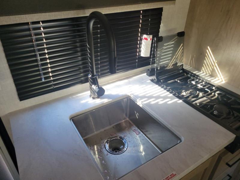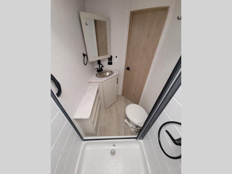 With any E-Series travel trailer by Ember RV you will enjoy a lightweight RV with all the "Essentials" needed for memorable trips in the great outdoors! Each model is constructed with durable laminated Azdel Onboard composite walls, a full walkable roof with a one-piece Tufflex PVC roofing material, and a gel-coated fiberglass exterior. The Dexter axles with E-Z lube hubs and forward self-adjusting electric brakes plus Goodyear Endurance tires will provide a smooth tow from home to campground. You will appreciate the Congoleum DiamondFlor "carpetless" interior that is easy to clean, and the hardwood framed cabinet doors will create a more residential feel. Each model includes a tankless on-demand water heater for endless hot showers and an 18,000 BTU Max Cool "Whisper Quiet" A/C, which is the largest single A/C in its class! If you're looking for off-grid capabilities, you might want to choose the optional Off-Grid Solar Package with 400 total watts of solar panels, a 2,000W Pure Sine wave inverter, and a Victron MPPT solar controller!