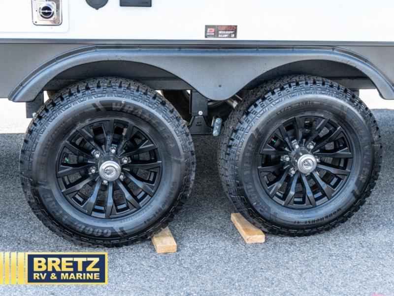 With any E-Series travel trailer by Ember RV you will enjoy a lightweight RV with all the "Essentials" needed for memorable trips in the great outdoors! Each model is constructed with durable laminated Azdel Onboard composite walls, a full walkable roof with a one-piece Tufflex PVC roofing material, and a gel-coated fiberglass exterior. The Dexter axles with E-Z lube hubs and forward self-adjusting electric brakes plus Goodyear Endurance tires will provide a smooth tow from home to campground. You will appreciate the Congoleum DiamondFlor "carpetless" interior that is easy to clean, and the hardwood framed cabinet doors will create a more residential feel. Each model includes a tankless on-demand water heater for endless hot showers and an 18,000 BTU Max Cool "Whisper Quiet" A/C, which is the largest single A/C in its class! If you're looking for off-grid capabilities, you might want to choose the optional Off-Grid Solar Package with 400 total watts of solar panels, a 2,000W Pure Sine wave inverter, and a Victron MPPT solar controller!