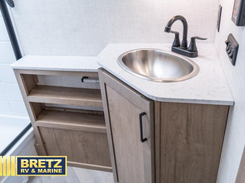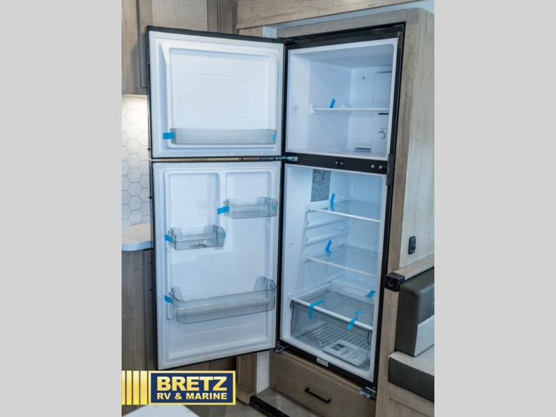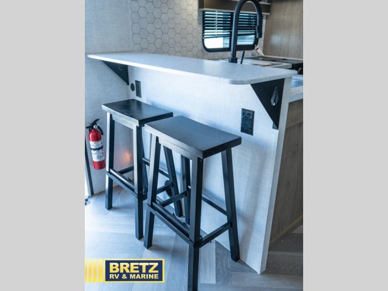 With any E-Series travel trailer by Ember RV you will enjoy a lightweight RV with all the "Essentials" needed for memorable trips in the great outdoors! Each model is constructed with durable laminated Azdel Onboard composite walls, a full walkable roof with a one-piece Tufflex PVC roofing material, and a gel-coated fiberglass exterior. The Dexter axles with E-Z lube hubs and forward self-adjusting electric brakes plus Goodyear Endurance tires will provide a smooth tow from home to campground. You will appreciate the Congoleum DiamondFlor "carpetless" interior that is easy to clean, and the hardwood framed cabinet doors will create a more residential feel. Each model includes a tankless on-demand water heater for endless hot showers and an 18,000 BTU Max Cool "Whisper Quiet" A/C, which is the largest single A/C in its class! If you're looking for off-grid capabilities, you might want to choose the optional Off-Grid Solar Package with 400 total watts of solar panels, a 2,000W Pure Sine wave inverter, and a Victron MPPT solar controller!
