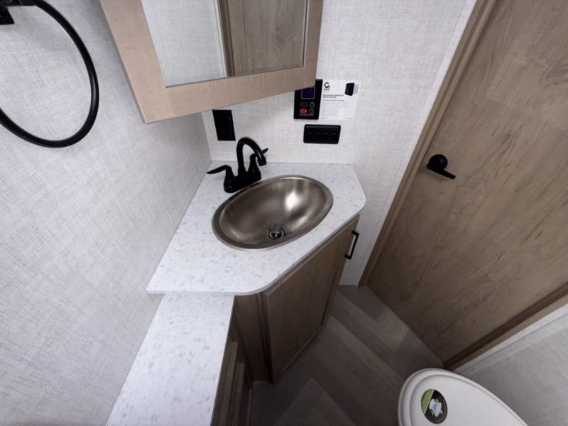 With any E-Series travel trailer by Ember RV you will enjoy a lightweight RV with all the "Essentials" needed for memorable trips in the great outdoors! Each model is constructed with durable laminated Azdel Onboard composite walls, a full walkable roof with a one-piece Tufflex PVC roofing material, and a gel-coated fiberglass exterior. The Dexter axles with E-Z lube hubs and forward self-adjusting electric brakes plus Goodyear Endurance tires will provide a smooth tow from home to campground. You will appreciate the Congoleum DiamondFlor "carpetless" interior that is easy to clean, and the hardwood framed cabinet doors will create a more residential feel. Each model includes a tankless on-demand water heater for endless hot showers and an 18,000 BTU Max Cool "Whisper Quiet" A/C, which is the largest single A/C in its class! If you're looking for off-grid capabilities, you might want to choose the optional Off-Grid Solar Package with 400 total watts of solar panels, a 2,000W Pure Sine wave inverter, and a Victron MPPT solar controller!