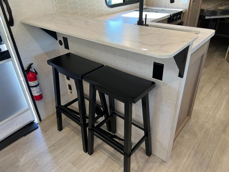 With any E-Series travel trailer by Ember RV you will enjoy a lightweight RV with all the "Essentials" needed for memorable trips in the great outdoors! Each model is constructed with durable laminated Azdel Onboard composite walls, a full walkable roof with a one-piece Tufflex PVC roofing material, and a gel-coated fiberglass exterior. The Dexter axles with E-Z lube hubs and forward self-adjusting electric brakes plus Goodyear Endurance tires will provide a smooth tow from home to campground. You will appreciate the Congoleum DiamondFlor "carpetless" interior that is easy to clean, and the hardwood framed cabinet doors will create a more residential feel. Each model includes a tankless on-demand water heater for endless hot showers and an 18,000 BTU Max Cool "Whisper Quiet" A/C, which is the largest single A/C in its class! If you're looking for off-grid capabilities, you might want to choose the optional Off-Grid Solar Package with 400 total watts of solar panels, a 2,000W Pure Sine wave inverter, and a Victron MPPT solar controller!