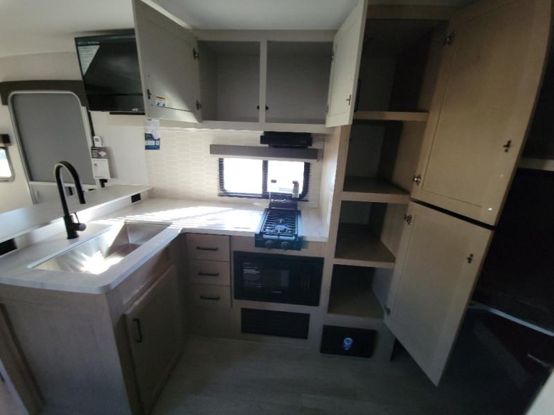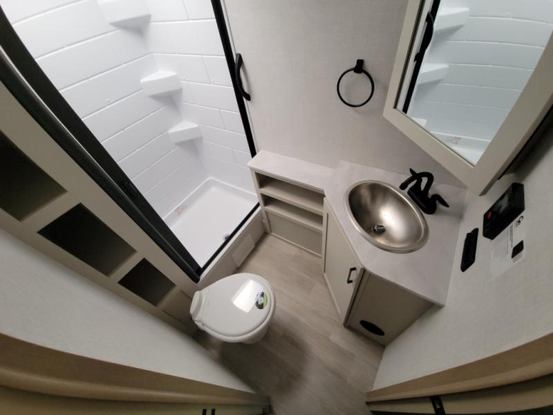 With any E-Series travel trailer by Ember RV you will enjoy a lightweight RV with all the "Essentials" needed for memorable trips in the great outdoors! Each model is constructed with durable laminated Azdel Onboard composite walls, a full walkable roof with a one-piece Tufflex PVC roofing material, and a gel-coated fiberglass exterior. The Dexter axles with E-Z lube hubs and forward self-adjusting electric brakes plus Goodyear Endurance tires will provide a smooth tow from home to campground. You will appreciate the Congoleum DiamondFlor "carpetless" interior that is easy to clean, and the hardwood framed cabinet doors will create a more residential feel. Each model includes a tankless on-demand water heater for endless hot showers and an 18,000 BTU Max Cool "Whisper Quiet" A/C, which is the largest single A/C in its class! If you're looking for off-grid capabilities, you might want to choose the optional Off-Grid Solar Package with 400 total watts of solar panels, a 2,000W Pure Sine wave inverter, and a Victron MPPT solar controller!