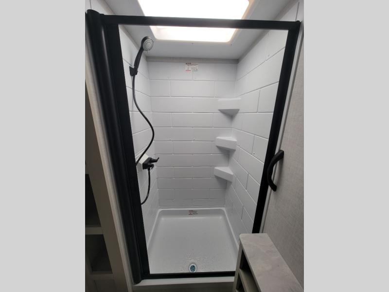 With any E-Series travel trailer by Ember RV you will enjoy a lightweight RV with all the "Essentials" needed for memorable trips in the great outdoors! Each model is constructed with durable laminated Azdel Onboard composite walls, a full walkable roof with a one-piece Tufflex PVC roofing material, and a gel-coated fiberglass exterior. The Dexter axles with E-Z lube hubs and forward self-adjusting electric brakes plus Goodyear Endurance tires will provide a smooth tow from home to campground. You will appreciate the Congoleum DiamondFlor "carpetless" interior that is easy to clean, and the hardwood framed cabinet doors will create a more residential feel. Each model includes a tankless on-demand water heater for endless hot showers and an 18,000 BTU Max Cool "Whisper Quiet" A/C, which is the largest single A/C in its class! If you're looking for off-grid capabilities, you might want to choose the optional Off-Grid Solar Package with 400 total watts of solar panels, a 2,000W Pure Sine wave inverter, and a Victron MPPT solar controller!